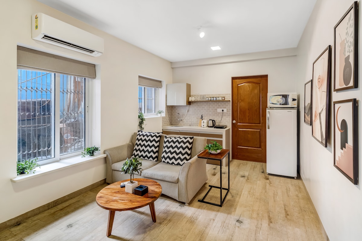 🍃 Experimentează farmecul Bandrei în acest 1 BHK curat și confortabil, amplasat pe străzile fermecătoare ale satului Chuim. Perfectă pentru persoane care călătoresc singure, cupluri sau familii mici, această locuință combină confortul, comoditatea și o notă de farmec local. Ascuns în Chuim Village, unul dintre cele mai autentice cartiere din Bandra, te afli la doar câteva minute de Carter Road, cafenele la modă, magazine tip boutique și promenada plină de viață de pe malul mării. În ciuda poziției centrale, locuința oferă o atmosferă calmă 🍃
