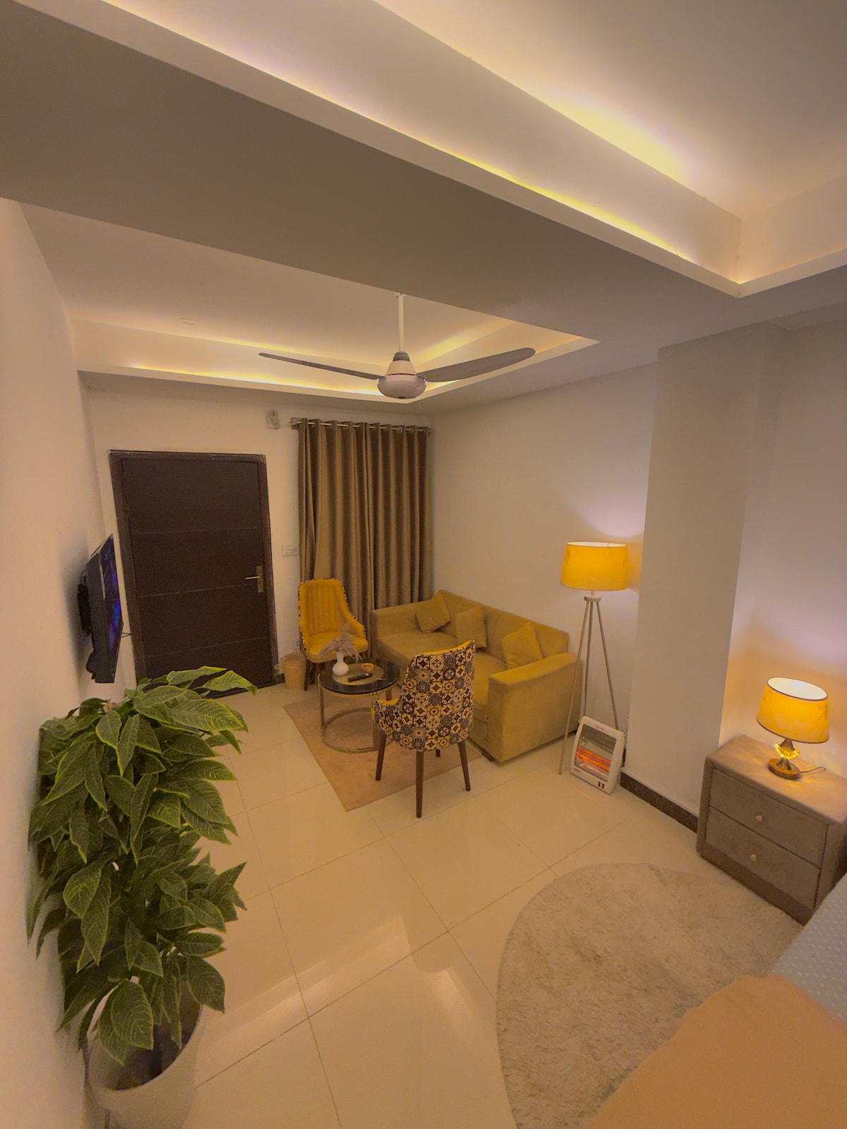 Contemporan și luxos 1 BHK în Seven Star Heights – Bahria Town Faza 8 Clădire ▸ premium, sigură, cu hol de designer și lifturi Complex închis▸, cu securitate non-stop și atmosferă prietenoasă pentru expați ▸ 15 minute până la Giga Mall, Amazon Mall și DHA 2 Central Park ▸ 7 minute până la Faza 7 Food Street – Ranchers, Nandos, KFC Check-in independent ▸ fără cheie cu cod de acces Wi-Fi ▸ rapid – perfect pentru configurațiile de lucru de acasă Ghid ▸ digital inclus – explorează ca un localnic Rezervă acum și experimentează viața de lux la superlativ.