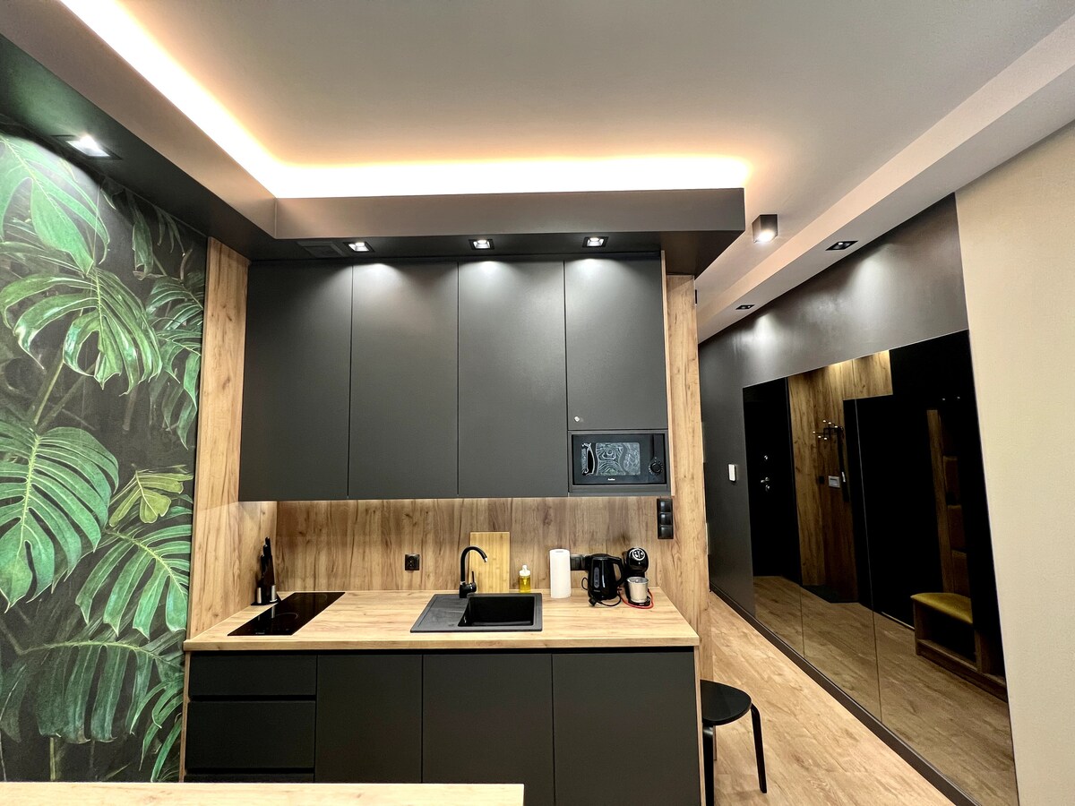 Piękny nowy apartament położony w zielonej dzielnicy miasta oferuje oryginalny wystrój i komfortowe warunki pobytu . Designersko urządzone studio o powierzchni 19 m2 posiada oddzielną sypialnię , przestronnną łazienkę, duży taras z widokiem na zieleń i bezpłatny parking podziemny. Dla zapewnienia komfortu ; - Netflix, SMART TV, Wi-FI - sprzątanie z wymianą pościeli i ręczników w trakcie pobytu - bezkontaktowe zameldowanie -najwyższe standardy higieny , prywatność i bezpieczeństwo.