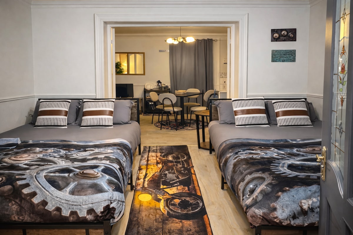 Newly renovated and full of character, this self-contained apartment sleeps up to 4 guests with two double beds. Enjoy your own private living area, fully equipped kitchen, bedroom, and a Pop Art bathroom, Designed with Hollywood travel glamour and industrial flair, the space is stylish and comfortable in a central location close to everything. Guests also enjoy shared BnB spaces, including a snack station, a cozy lounge with coal fire, board games, books, and a free breakfast to start your day