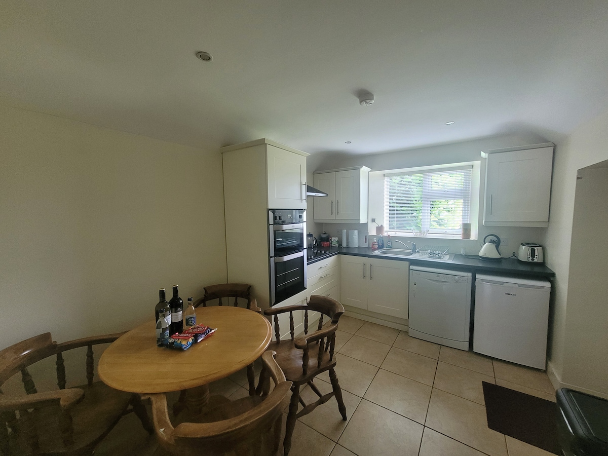 Apartament frumos, privat, spațios și modern, cu 1 dormitor, într-un cadru liniștit la marginea orașului Kilkenny. Bucătărie/zonă de living cu tot ce ai nevoie pentru a găti dacă dorești să mănânci. Bucură-te de cada fabuloasă în care să te relaxezi după o zi de vizitat obiective turistice. Bucură-te de Netflix TV și Wi-Fi gratuit Grădină privată proprie Parcare gratuită chiar în fața apartamentului . Unele produse esențiale pentru micul dejun sunt incluse la sosire Cereale pentru micul-dejun Lapte Ceai și cafea