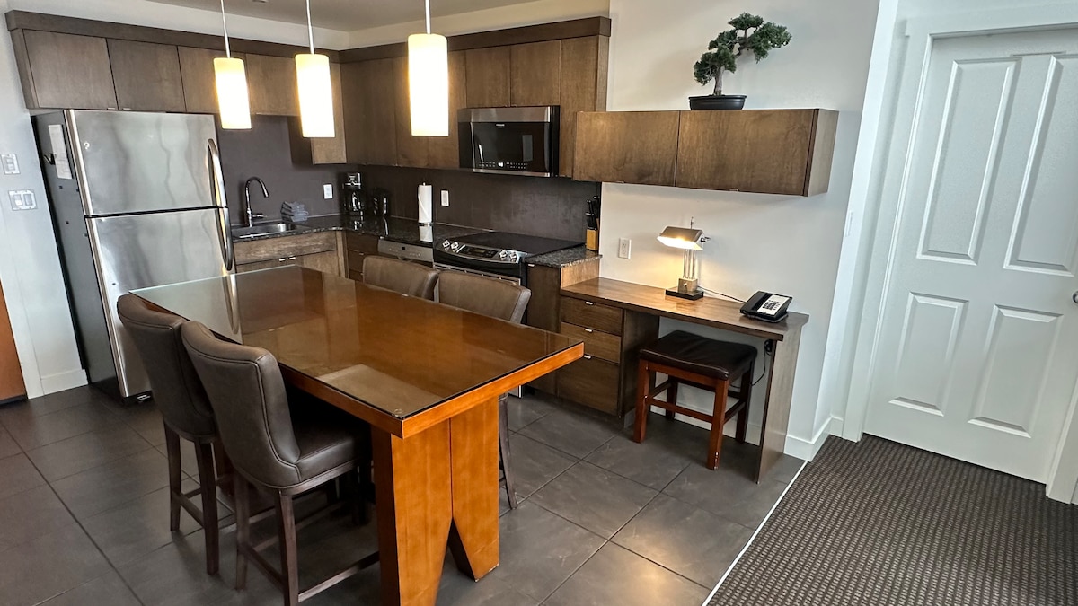 Minutes from hiking, biking and skiing, this open concept studio apartment has all you need for a comfortable stay! Elevator, year round swimming pool, hot tub, privacy-what more do you need for an amazing vacation. Great location at the base of the Kimberley ski area, 5 minutes to golf, and 5 minutes to miles of hiking, biking or walking trails! Free wifi makes this the perfect place to Live, Work and Play!