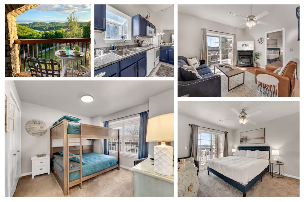 Relax with the whole family at this newly remodeled condo on Table Rock Lake. This peaceful 2bd/2bath sleeps 6 comfortably, and is located just south of the Kimberling City Bridge. Table Rock Getaways is known for its comfortable furnishings, fully equipped kitchen, hospitality items provided, and being a cozy retreat that smells amazing. Enjoy seeing the lake from your bedroom window and only being steps away from jumping in. We have 2 community pools/hot tub during season (May- Sept).