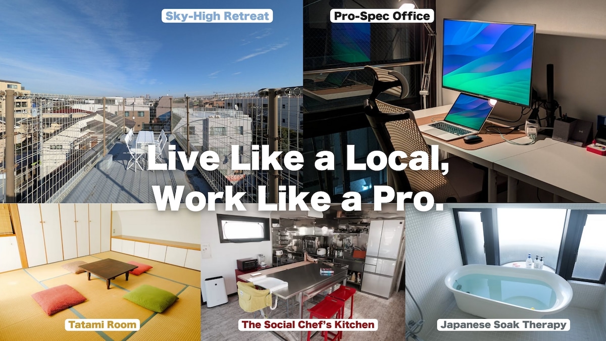 O casă recent decorată, foarte confortabilă și confortabilă. Există 3 dormitoare mari disponibile, pentru până la 8 persoane. Casa este o proprietate legală cu o licență de funcționare emisă de guvernul japonez. Poți sta la locuință fără nicio grijă cu privire la încălcarea unei legi în Japonia. Accesul de la Aeroportul Haneda este foarte convenabil, deoarece este la 5 minute de mers pe jos de gara Keikyu Kamata. 【Dimensiune 】72 metri pătrați + mansardă mare + balcon pe acoperiș