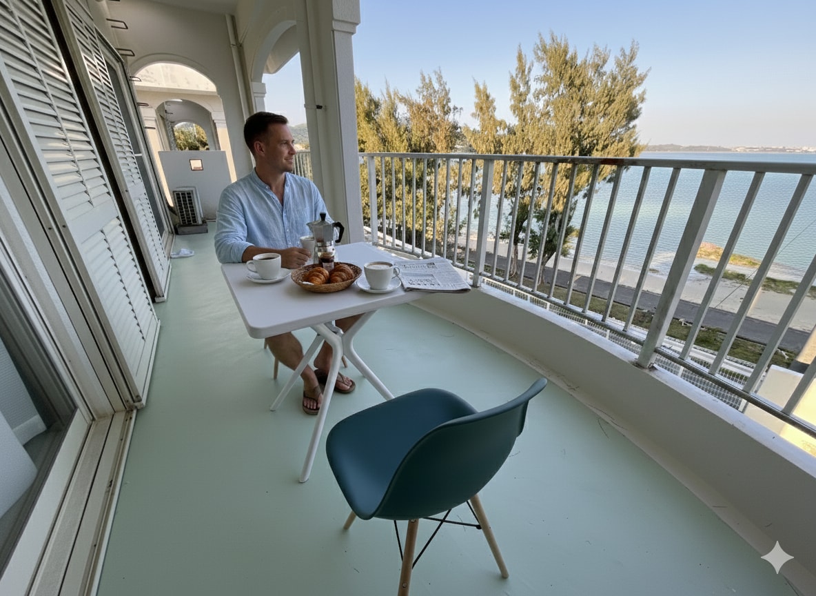 O cameră spațioasă de 55 m² la ultimul etaj 14.Verandă orientată spre ocean, unde te poți bucura de frumosul apus de soare al oceanului.Parcare gratuită la proprietate.