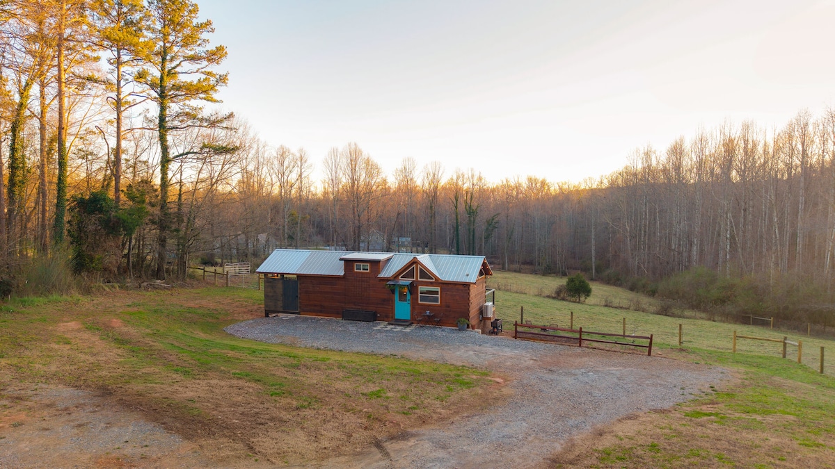 Escape to the Blue Ridge foothills + stay in our cozy tiny cabin at Gold River Camp - a riverside retreat on the Second Broad River, once home to America’s 1st gold rush. This peaceful, nature-filled getaway combines rustic charm w/ modern comfort for the perfect glamping experience. Wake up to the sound of the river, sip coffee on your private balcony + explore the history that runs through this land — once a gold + gem panning site, now a laid-back destination for relaxation + adventure.