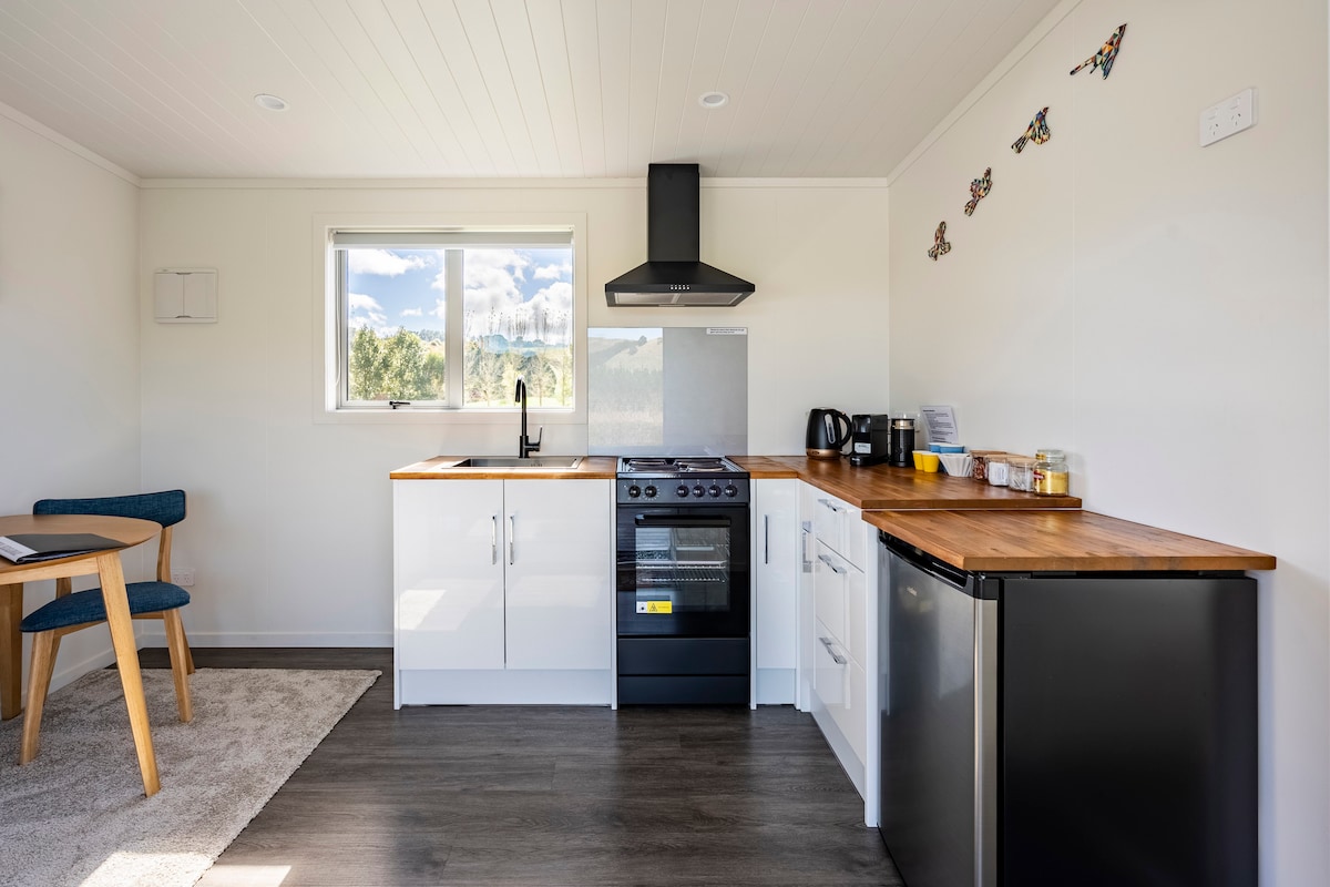 Situat la doar 5 minute de mers pe jos de lac, în inima satului Kinloch. Un șemineu primitor oferă căldură confortabilă în serile răcoroase. Te așteaptă un pat matrimonial cu lenjerie de pat crocantă și perne de pluș. Două uși glisante deschise spre o terasă privată (pot fi închise) cu o bucătărie (plită, oală, tigaie, aparat de cafea, ceai și lapte într-un frigider mic), șemineu, baie privată și o priveliște uimitoare din cada în aer liber și duș (apă caldă). Notă: avem albine în imediata apropiere :)