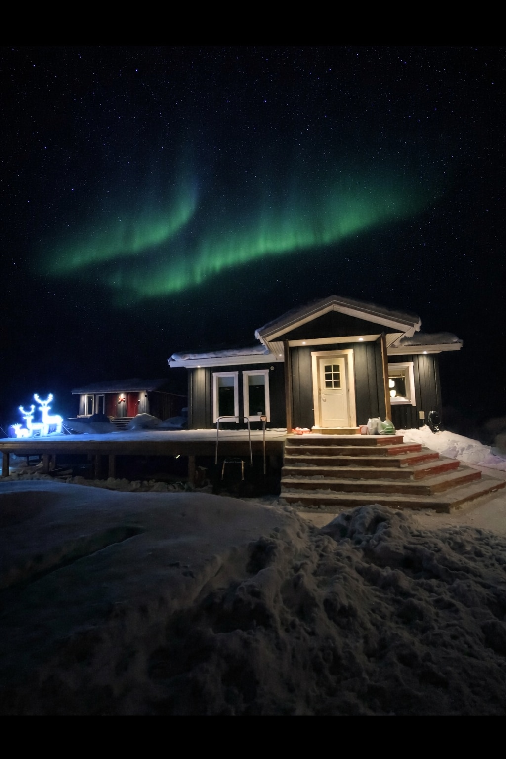 Bine ai venit la cabana noastră cu vedere la lac, înconjurată de natura uluitoare a Laponiei suedeze. Locația sa îndepărtată, chiar pe malul lacului Sautus, adună condiții perfecte pentru a observa Luminile Nordului. La capătul unui mic drum forestier începe aventura ta arctică: ascultă liniștea, experimentează temperaturile de îngheț și încălzește-te în sauna ta privată cu lemne. Casa noastră este chiar lângă cabana ta și suntem întotdeauna bucuroși să te ajutăm. Vei descoperi adevăratul tărâm al minunilor de iarnă aici!
