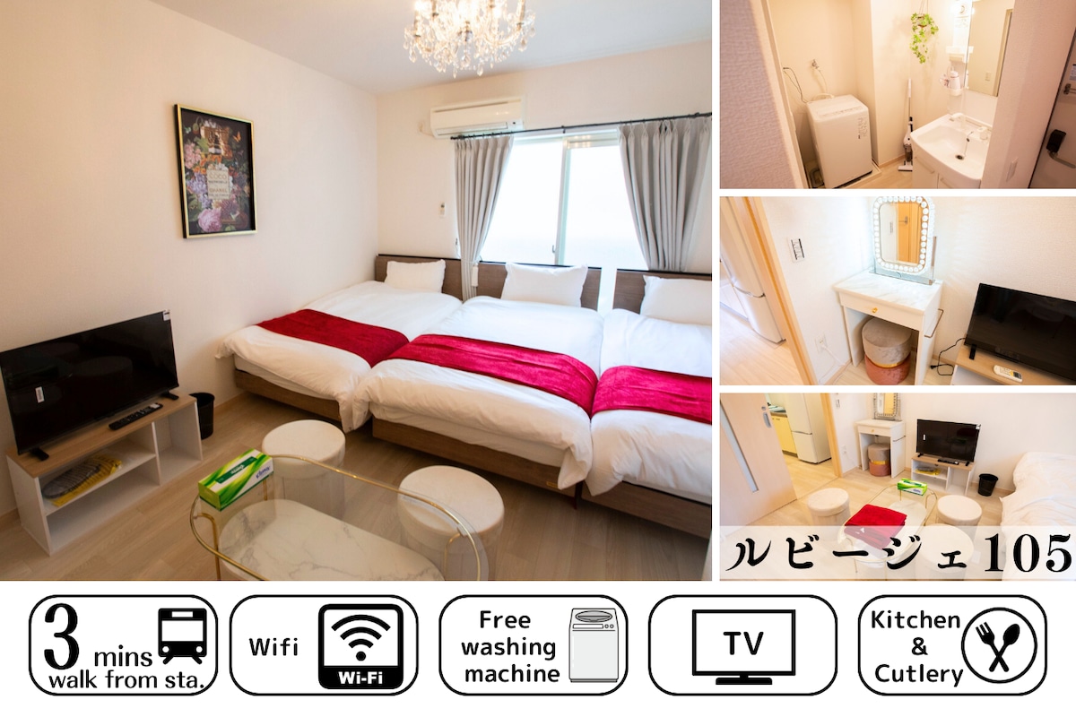 Recomandat pentru USJ/Universal Studios și vizitarea orașului Osaka, complet privat, 1LDK, 3 paturi, 5 minute de mers pe jos de la gară, până la 4 persoane