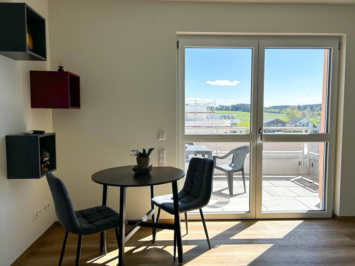 Apartamentul nostru modern și curat din Kißlegg este ideal pentru doi adulți, părinți cu copii, instalatori sau călători pe teren. Acesta oferă un pat supraetajat (sub 1,40 m, sus 90 cm), o bucătărie complet utilată, o baie nouă mare și un balcon imens cu vedere alpină. Bucură-te de internet prin fibră optică și de un televizor inteligent. Parcarea pentru biciclete și un supermarket din apropiere completează oferta. Locație liniștită, fără zgomot din trafic și sistem de acces inteligent pentru confortul tău.