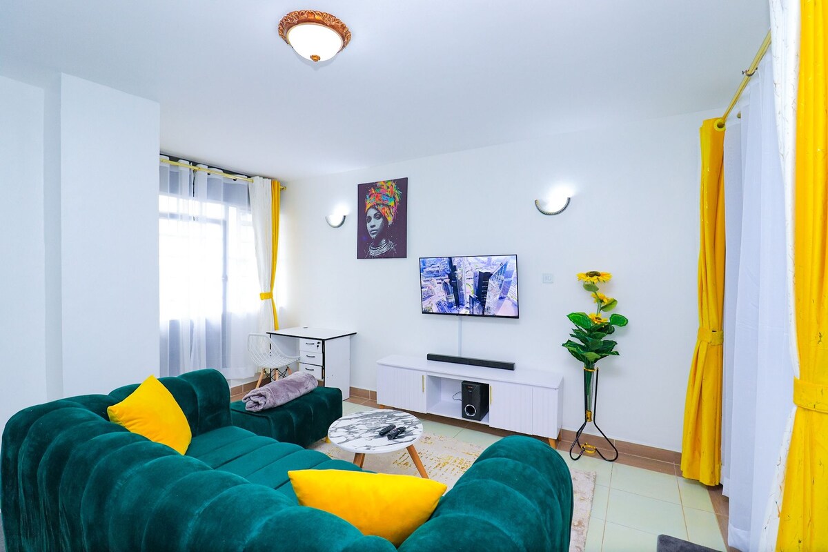 Apartamentul nostru liniștit și unic cu un dormitor este modern și elegant și este situat la Mi Vida Homes - Garden City Mall, lângă ieșirea 7 Thika Road. Mi Vida este un loc de cazare perfect liniștit în timpul vacanței, lucrului sau ca locuință, cu spații verzi bine amenajate și grădini de flori colorate amenajate. Piscina și sala de gimnastică complet echipată te ajută să te menții în formă și să te relaxezi, cu o terasă în aer liber pe acoperiș pentru a te relaxa sau a ține un grătar. Oferă acces facil la Nairobi CBD și aeroportul JKIA.
