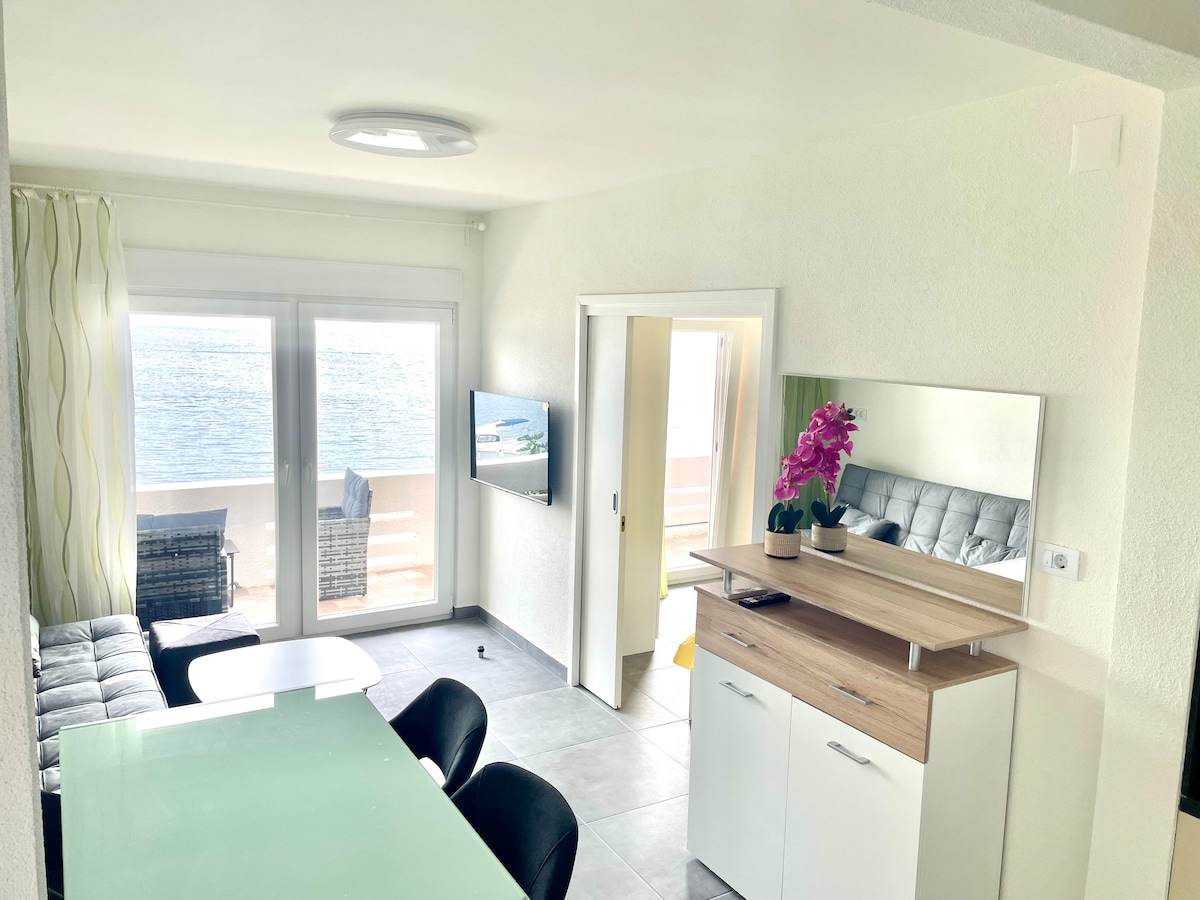 Dobro došli u naš prostrani i svijetli stan smješten direktno uz more, idealan za obitelji i prijatelje! Stan nudi dnevnu sobu s udobnim kaučem (pogodnim za dijete), blagovaonicu, potpuno opremljenu kuhinju, kao i dvije udobne spavaće sobe, obje s bračnim krevetima. Uživajte u jutarnjoj kavi uz šum valova, romantičnim večerima uz zalazak sunca i mirnoj atmosferi koja će vas istinski opustiti. Stan je savršen za do 5 gostiju i pruža sve što vam je potrebno za nezaboravan boravak na obali.