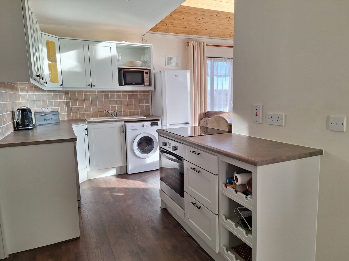 Bine ai venit în această căsuță liniștită cu un dormitor, situată chiar lângă lac, în frumosul Portrunny Bay. Înconjurat de câmpuri verzi și alei de țară liniștite, este locul perfect pentru odihnă și destindere. Bucură-te de plimbări pe malul lacului, de cântecul păsărilor „Wild Heart Garden” și de aerul curat de la țară. Dacă iubești natura, împrejurimile frumoase și liniștite și o pauză liniștită și relaxantă, acesta este locul potrivit pentru tine.