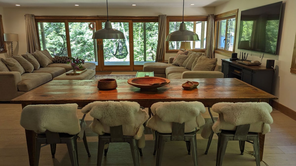 O adevărată cabană în North Woods, izolată, privată și înconjurată de cerul liber și de priveliști montane impresionante, care îți amintesc de ce ai venit. Acest refugiu în stil rustic este amplasat adânc în pădure, deasupra orașului Tamworth, complet utilat pentru confort, fără a renunța la aspectul robust. Fă drumeții pe traseele locale, admiră stelele într-un mediu cu poluare luminoasă aproape inexistentă sau stai lângă vatră cu munții în fața ta. Sauna opțională pe lemne, la doar câțiva pași de ușă, este modul perfect de a încheia ziua. Saună disponibilă ca supliment unic.
