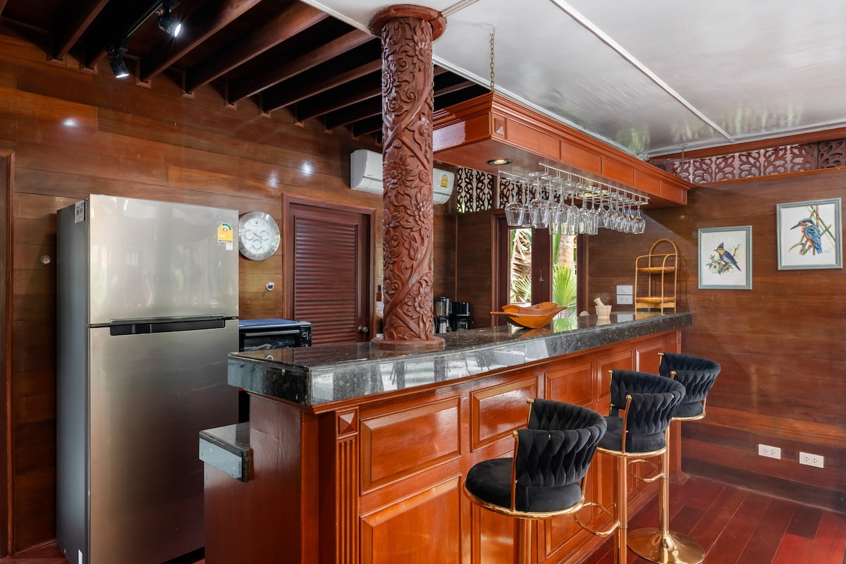 Relaxează-te în această vilă spațioasă, renovată și liniștită, aflată la câțiva pași de plaja Bang Por, într-un complex liniștit de doar 6 vile de vacanță. La doar 25 m de plaja Bang Por, această vilă spațioasă în stil thailandez, cu 4 dormitoare, este perfectă pentru familii, prieteni și grupuri, maximum 7 oaspeți, și include o piscină comună mare cu zonă pentru copii, parcare și acces direct la plajă. Vilă mare în stil thailandez pe 2 etaje, inclusiv bucătărie complet utilată, mese în aer liber, grătar și Smart TV pentru nopți confortabile. Complex liniștit și sigur pe minunata plajă Bang Por.