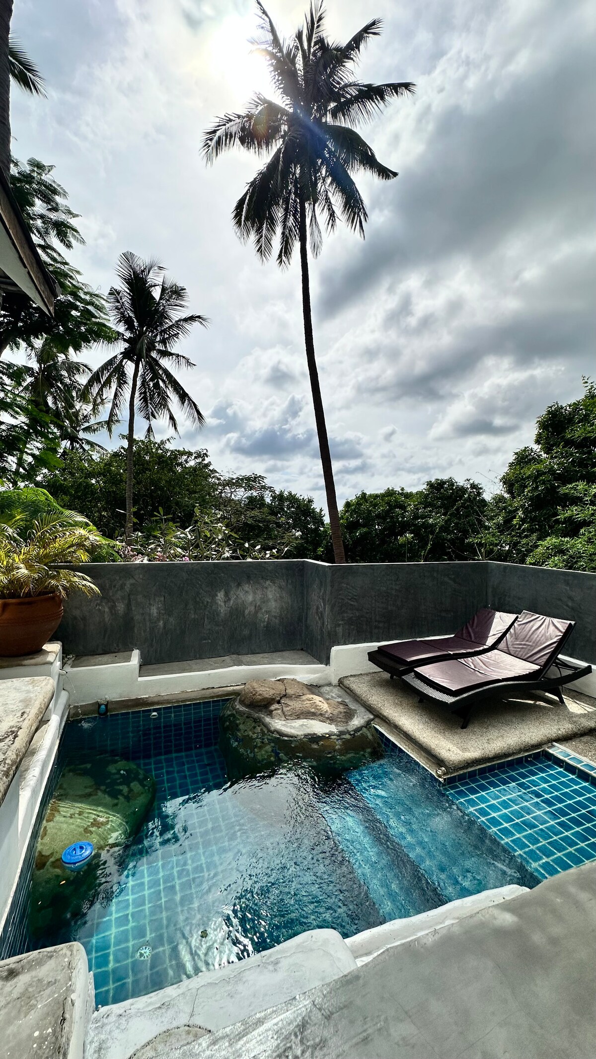 Vila noastră tropicală e un vis devenit realitate. Se află perfect pe un deal abrupt, la aproximativ 35 de metri deasupra nivelului mării, cu o vedere panoramică uimitoare la mare pe mica insulă retrasă Koh Tao. Vrei instantaneu să te relaxezi pe puntea generoasă din lemn și să te bucuri de apusul de soare. Sau să înoți în piscina infinită. Sau să nu faci nimic în mod special decât să te bucuri de viață. Oricum ar fi, acesta este pur și simplu un loc frumos.