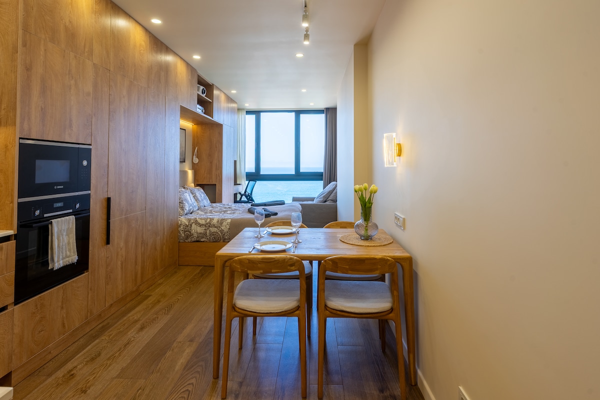 Welcome to Porta Exclusive Loft by Aesthaven - a new apartment on a high floor of the iconic Porta Batumi Tower. Enjoy panoramic views of the Black Sea, modern design, and quality appliances. Every detail is created for your comfort. The apartment accommodates 1 to 4 guests. Great location - just steps from the Old Town, the seaside boulevard, restaurants, and main attractions.