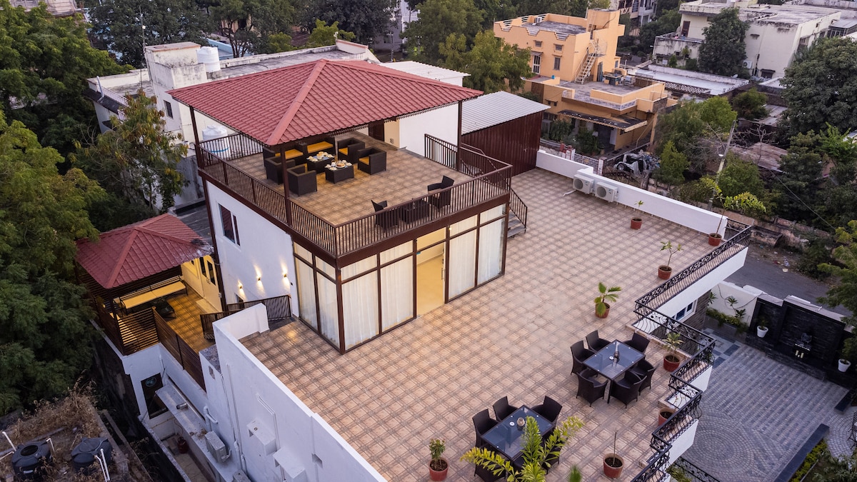 Situat central pe un deal fermecător, un penthouse Lavish 5 BHK cu terasă privată într-un refugiu de vacanță de lux - apartamentele Villa Signature. Oferă priveliști panoramice asupra răsăritului de soare maiestuos peste lacul Swaroop Sagar, lanțul muntos Aravali și orizontul orașului. Oaspeții ar avea, de asemenea, acces la diferitele spații comune ale Retreat, cum ar fi punțile construite la diferite altitudini, un lounge regal și o zonă de wellness dotată cu un centru spa și jacuzzi (disponibilă la o rezervare prealabilă, la un cost suplimentar).