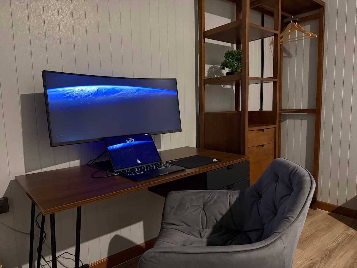 🏝️ DIGITAL NOMAD PARADISE - CENTRAL KOH PHANGAN LOCATION Work remotely in tropical luxury! This modern 1-bedroom bungalow features a professional office setup with 4K widescreen monitor and dedicated workspace - perfect for digital nomads and couples. ✨ What Makes This Special: • Professional office setup with 4K monitor • 2 powerful AC units for tropical comfort • Central location - easy access to beaches & amenities • High-speed WiFi throughout • King bed (6ft) for ultimate relaxation