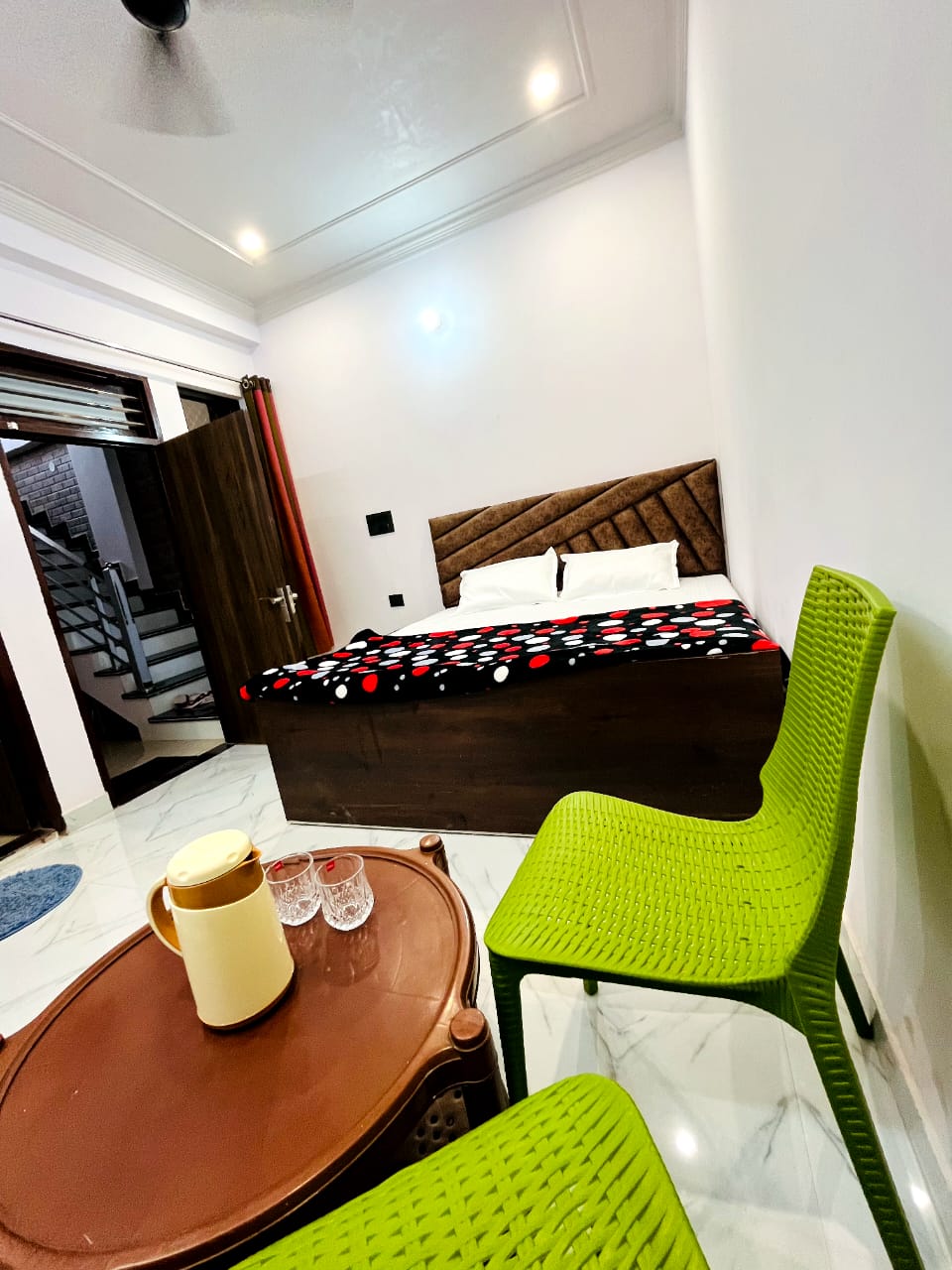 🛕 Prem Mandir – 2.3 km (7 mins) 🛕 ISKCON Temple – 2.8 km (10 mins) 🛕 Banke Bihari Ji – 4.2 km (15 mins) 🛕 Radha Raman Mandir (Nidhivan) – 6 km 🚉 Mathura Junction Railway Station – 15 km 🛺 Autos/e-rickshaw available right outside the society 🌮 Optional Breakfast available (on order) 📺 Smart TVs (Netflix, YouTube, etc.) 🌐 High-speed Wi-Fi (100 Mbps) 💧 RO water supply ❄️ Two air-conditioners (bedroom & living room) 🧊 Mini fridge ☕️ Induction stove, utensils & tea/coffee supplies