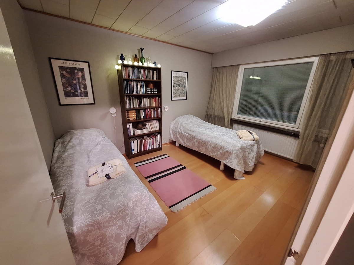 Rentoudu koko perheen kanssa tässä rauhallisessa majapaikassa. Ei läpikulkuliikennettä, viimeinen talo kadun päässä, omakotitaloaluetta. Samalla tontilla kun vuokraisäntien päärakennus. Sijainti 1,2 km keskustaan, lasten leikkipuisto 200 m päässä. Lähin kauppa ja McDonalds 500 m. Hyvin varusteltu m.m. ilmastoitu ja wifi y.m. Lastenrattaat, syöttötuoli, sitteri, matkasänky ja lasten muovinen kylpyamme .