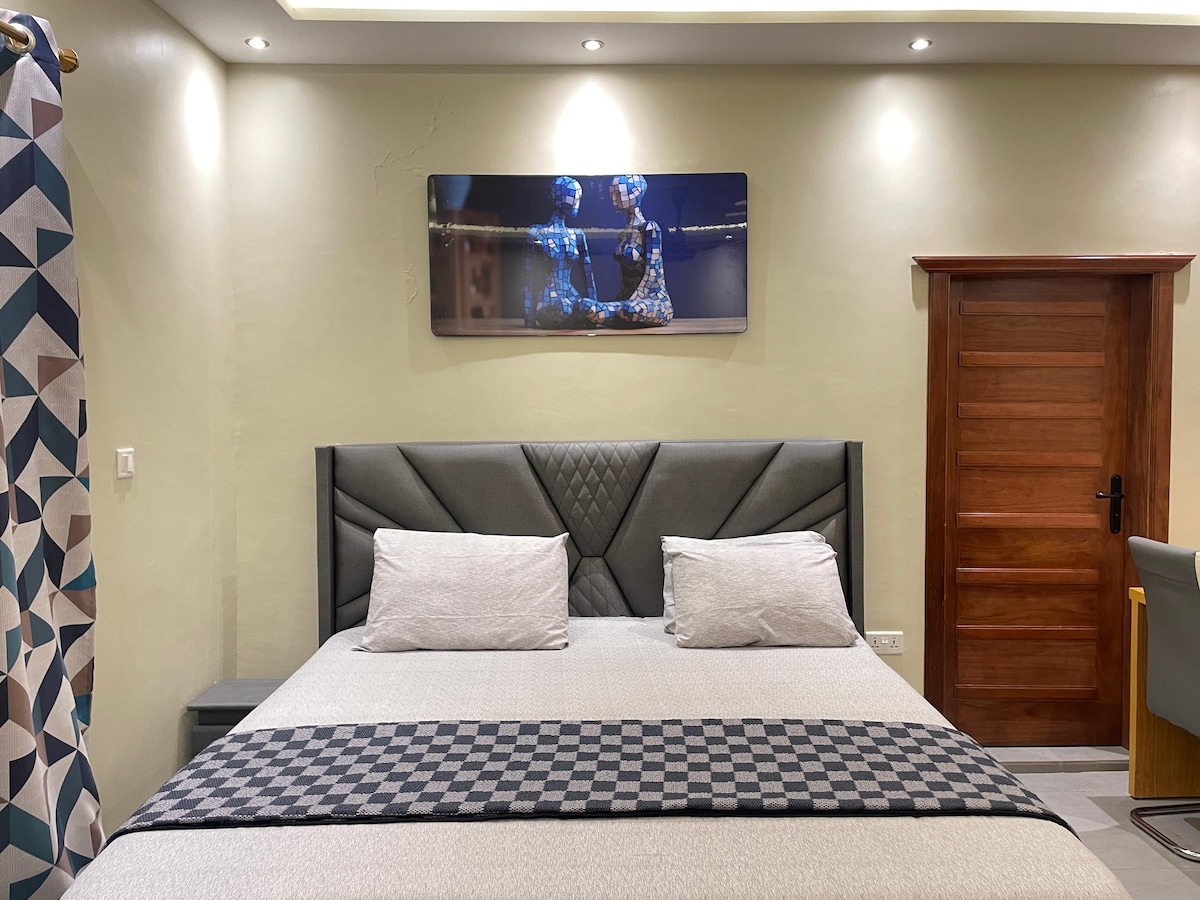 - Prime location near top restaurants, shops, and city attractions - Private parking and 24/7 manned security for your peace of mind - Free WiFi and a 55” Smart TV for work or entertainment - cozy kitchen and dining for a spacious, social feel - Backup power plant and water supply to ensure uninterrupted comfort - Self-check-in with a secure confirmation code for a seamless arrival - Access to a relaxing lounge and a scenic rooftop view of Kumasi city
