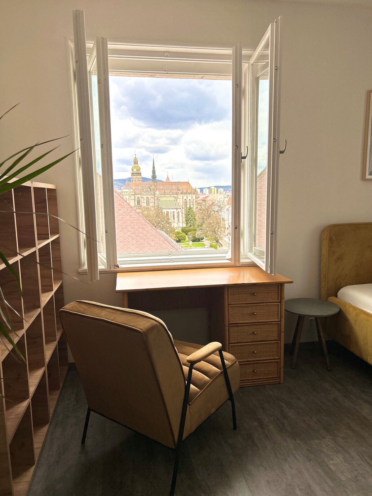 Un apartament mare și frumos în inima orașului Kosice, cu vedere la Catedrala Sf. Elisabeta. Situat într-o clădire istorică în care fotograful și pictorul de artă rafinată Imrich Emanuel Roth și-a amenajat studioul la începutul anilor 1850 - primul studio de fotografie nu numai în Košice, ci și în estul Slovacia.
