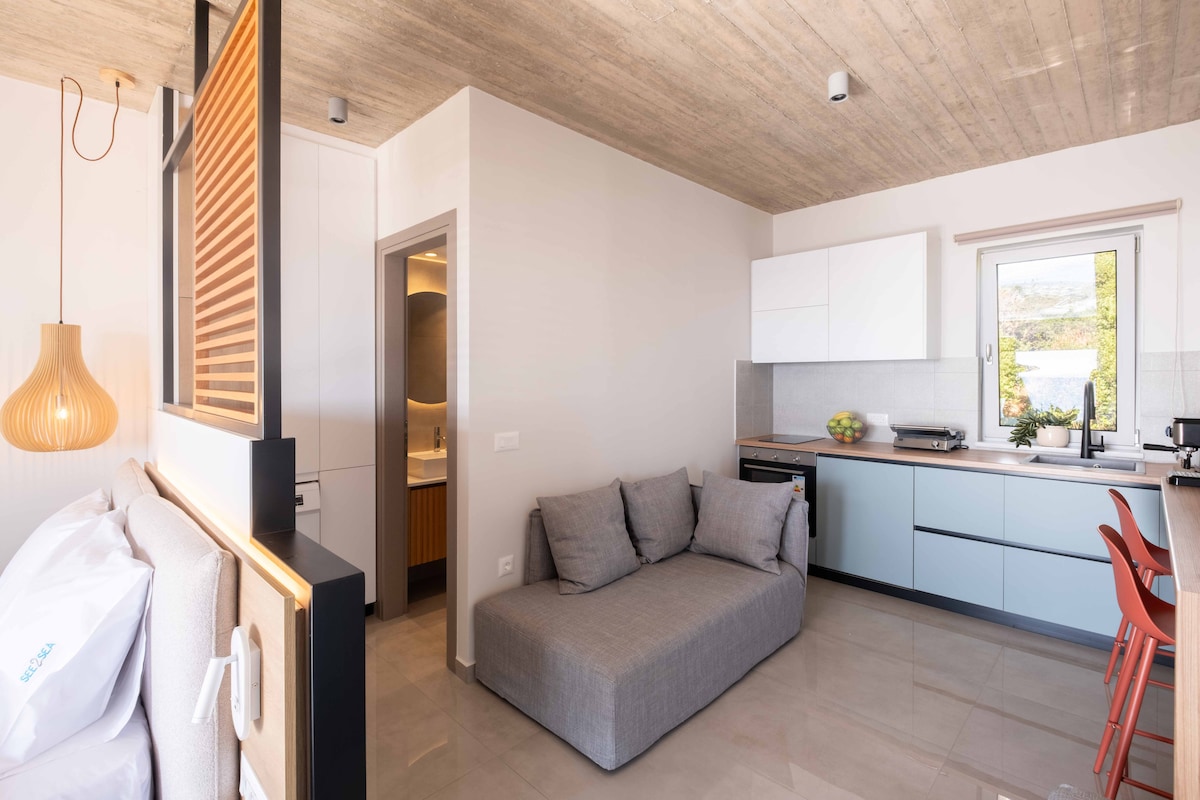 Descoperă Achatis Studios, situat la primul etaj al unui nou complex uimitor, care oferă șapte apartamente confortabile, la doar 1 km de plaja Kolymbari. Oferind vedere uluitoare la mare și o piscină comună liniștită, fiecare studio poate găzdui 2 oaspeți. Conceput pentru confort și relaxare autentice, Achatis promite un refugiu de neuitat în mijlocul frumuseții naturale. Așteptăm cu plăcere să te cufundăm într-o tapițerie de liniște și ospitalitate sinceră.