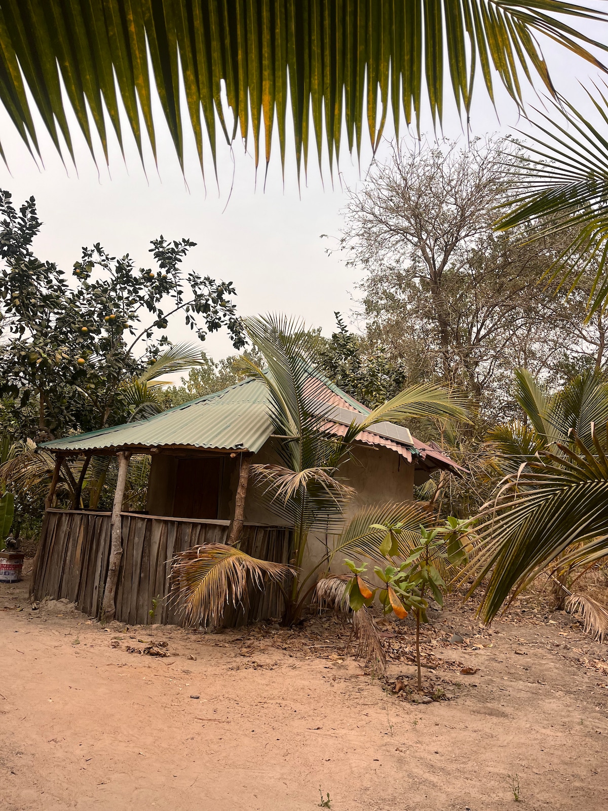 Jallo Kurundingoto (“small mahogany forest”) eco camp is a unique place where you can experience Gambian farmlife. It is located in an untouched forest on the outskirts of Nyonfelleh. Our camp is surrounded by a beautiful and healthy ecosystem that is home to many plant and bird species. We have plenty of hammocks around, and lots of fruit trees. The camp has 3 huts. There is a shared outside space with a fireplace where you can hangout and enjoy traditional Gambian meals and herbal teas.