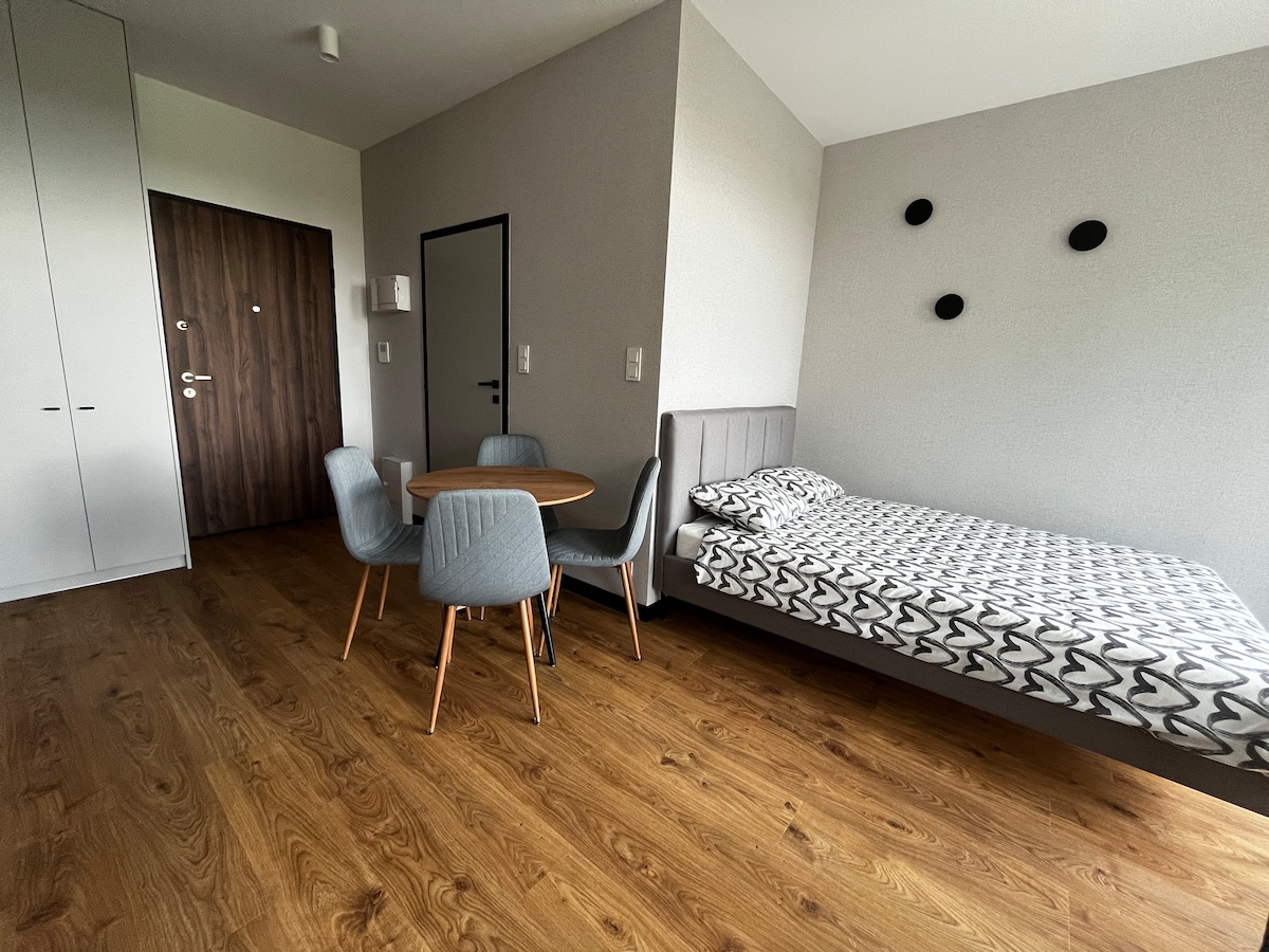 Conceput într-un apartament de înaltă calitate, complet echipat, confortabil, într-un cartier liniștit prestigios. TV (știri în engleză, franceză etc.), Wi-Fi rapid gratuit, loc de parcare în garaj și un balcon mare:) Chicinetă complet echipată. Cafenele, restaurante, sală de gimnastică non-stop și supermarket în apropiere. Perfect pentru cupluri, familii cu copii sau călători de afaceri. Simte-te ca acasă :)