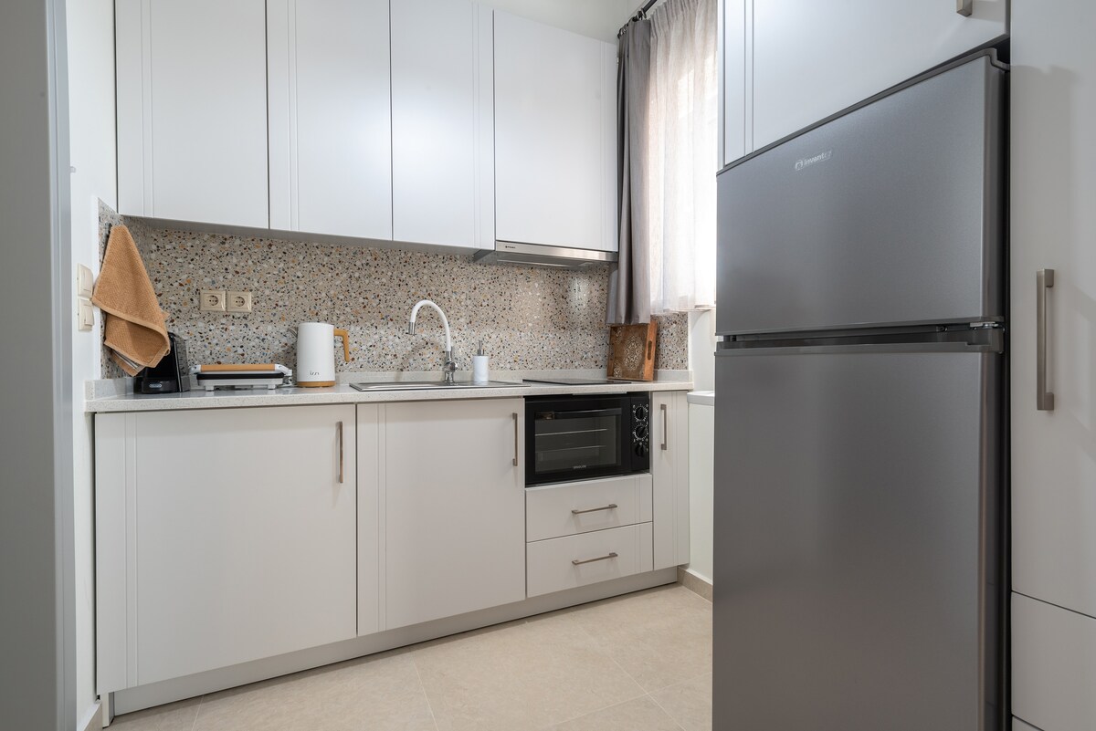 Căsuță confortabilă pe două niveluri, aproape de mare, în cel mai pitoresc sat Limnos. Animalele de companie sunt binevenite! 7' de la faimoasa plajă organizată și gratuită din Keros, cu jocuri și echipamente pentru sporturi nautice, cum ar fi kite surfing. Situat lângă un mini market și o spălătorie. Acces în 1' la parcarea municipală spațioasă gratuită! Situat central, cu acces direct la bancomate. Taverne, cafenele, locuri de divertisment pentru copii și adulți din apropiere, fără a vă deranja șederea.