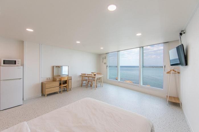 Am instalat un nou♥♥ Jungmun și am reparat zgomotul rutier ~ Este liniște♥ ♥ # Wi-Fi de înlocuire perfectă # închiriere gratuită cu tub # Închiriere de echipamente la magazinul de pescuit de lângă pensiune (taxat) Nu folosi niciodată un arzător☆ portabil cu gaz!!! Dacă ești prins, vei fi evacuat imediat. Pentru siguranța tuturor * Câinii pot fi însoțiți de unul sau doi câini (20.000 woni mai puțin de 3 kg/3 kg ~ 5 kg 30.000 woni) Câinii mari de peste 5 kg nu sunt permiși. Se decide după consultare. A fost nou construită în iulie 2018, iar gazda locuiește și o gestionează, deci este foarte curată. Este o clădire chiar în fața mării, iar când intri în cameră, poți vedea marea prin fereastra largă a verandei. Poți să te așezi și să te întinzi și să vezi oceanul. Toate priveliștile din cameră sunt fantastice. Ieși pe terasă și bucură-te de mare în briza răcoroasă! Este o structură de mansardă, deci este bine ca mai multe persoane să stea, iar structura de tip mansardă este foarte plăcută de copii. Este distractiv să te întinzi la etajul superior și să privești stelele noaptea ^ ^ De asemenea, îți recomand să te trezești puțin dimineața devreme pentru a privi răsăritul soarelui.