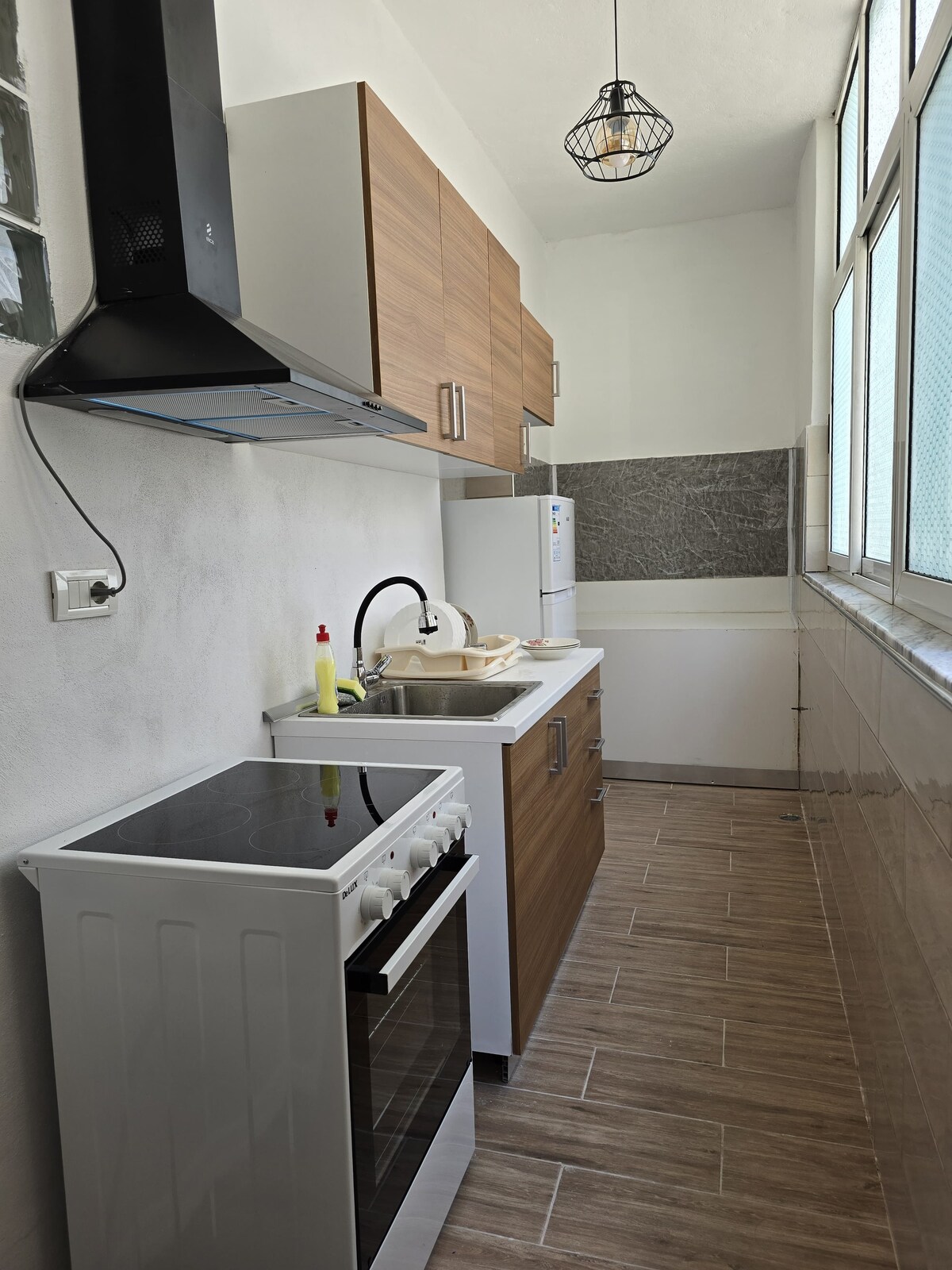 Apartamentul este situat nu departe de centru. Este un apartament nou care îndeplinește toate condițiile unei case (bucătărie completă, mașină de spălat rufe, balcon cu vedere frumoasă etc.). Trebuie să vizitezi pentru a înțelege că nu lipsește nimic pentru a te bucura de Pogradecin.