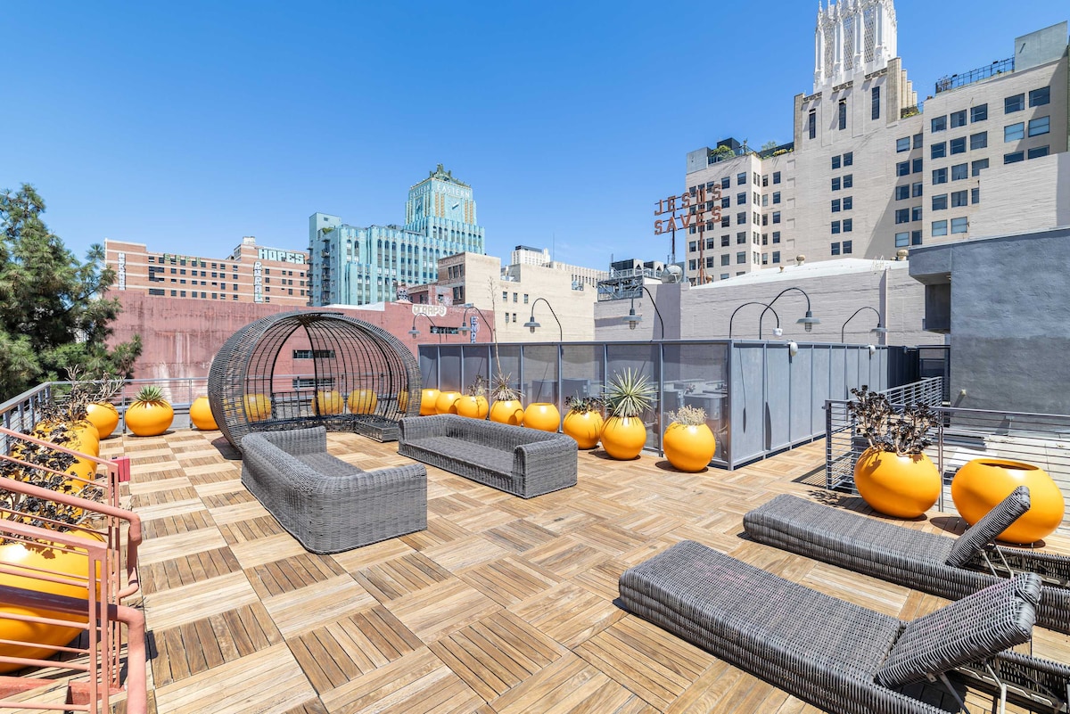 DTLA Skyline + Piscină pe acoperiș | Luxe High-Rise