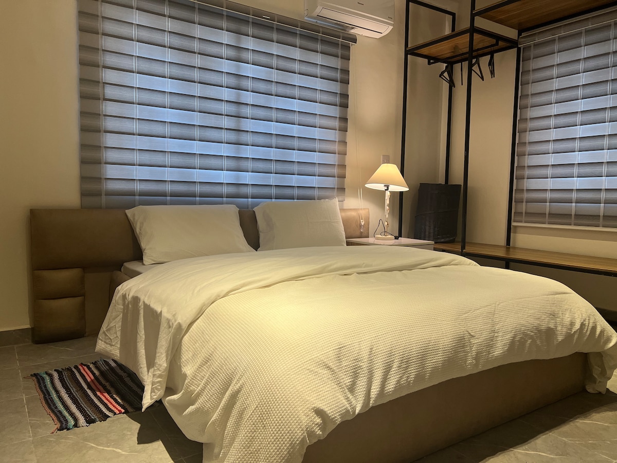 Cameră privată standard cu saltea confortabilă semi ortopedică, baie modernă cu boiler. WI-FI rapid nelimitat, televizor inteligent de 43 inchi în dormitor și televizor inteligent de 55 inchi în camera de zi, Netflix, YouTube, DSTV, detector de fum, electricitate non-stop cu bandă A de alimentare cu rețea face ca locuința mea să fie unică, fără Blackout, Cctv, securitate maximă, 10 minute până la Aeroportul Internațional și 5 minute până la Aeroportul Intern. Apartament strălucitor de curat, spațios și bine organizat pentru confortul tău