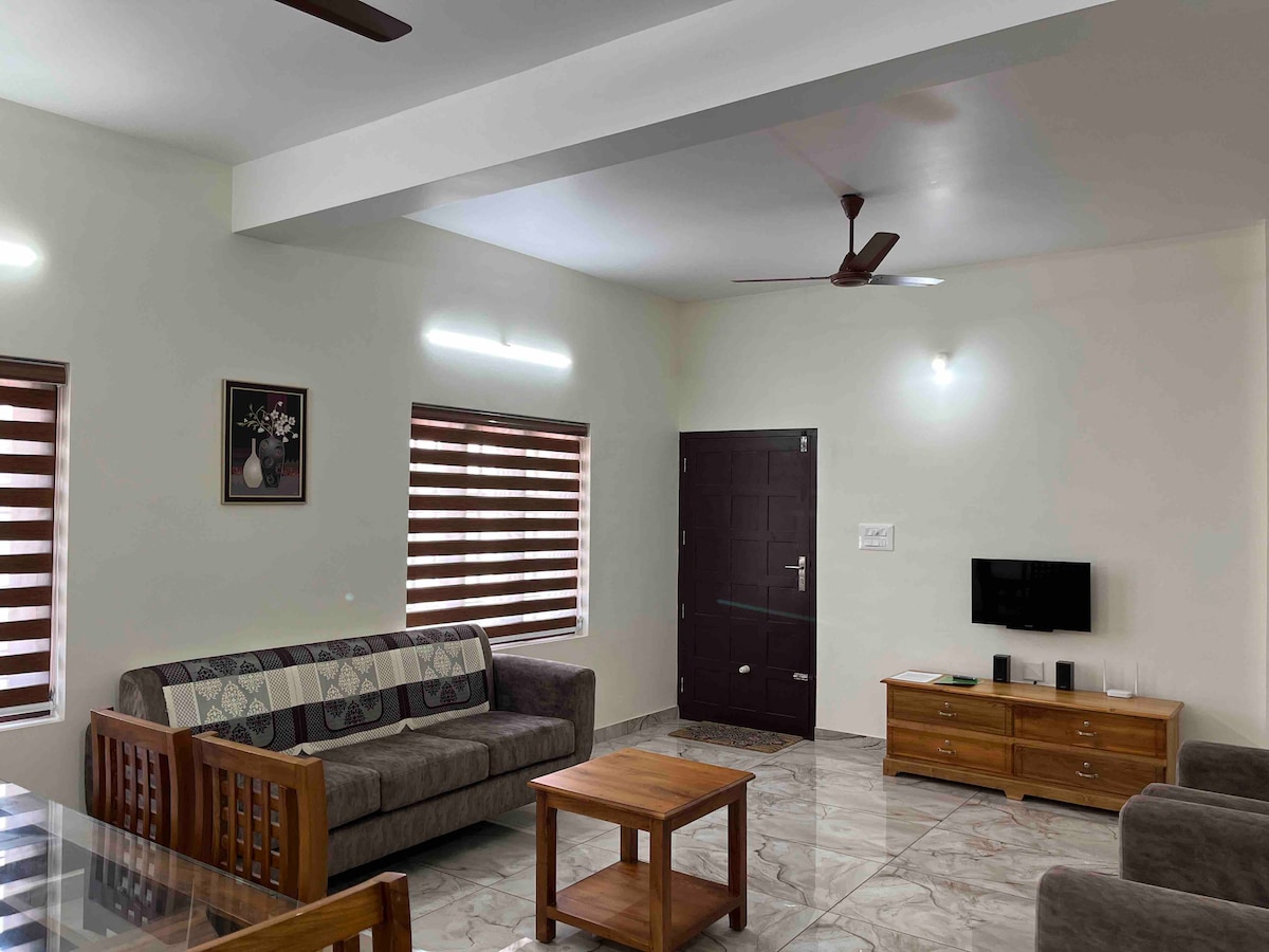 Apartament luxos cu 3 dormitoare în inima orașului Kottayam, la 1 km de gară, la 100 m de Collectorate și în imediata apropiere a Bisericii Lourde. Toate facilitățile de bază disponibile, inclusiv o bucătărie complet mobilată cu frigider, cuptor cu microunde, mașină de spălat rufe, filtru de apă RO, aragaz, ustensile și tacâmuri. Alte facilități includ 2 balcoane cu priveliști frumoase, Wi-Fi gratuit nelimitat, 2 locuri de parcare gratuite. Lângă un parc liniștit. Securitate non-stop cu apă și electricitate neîntreruptă.