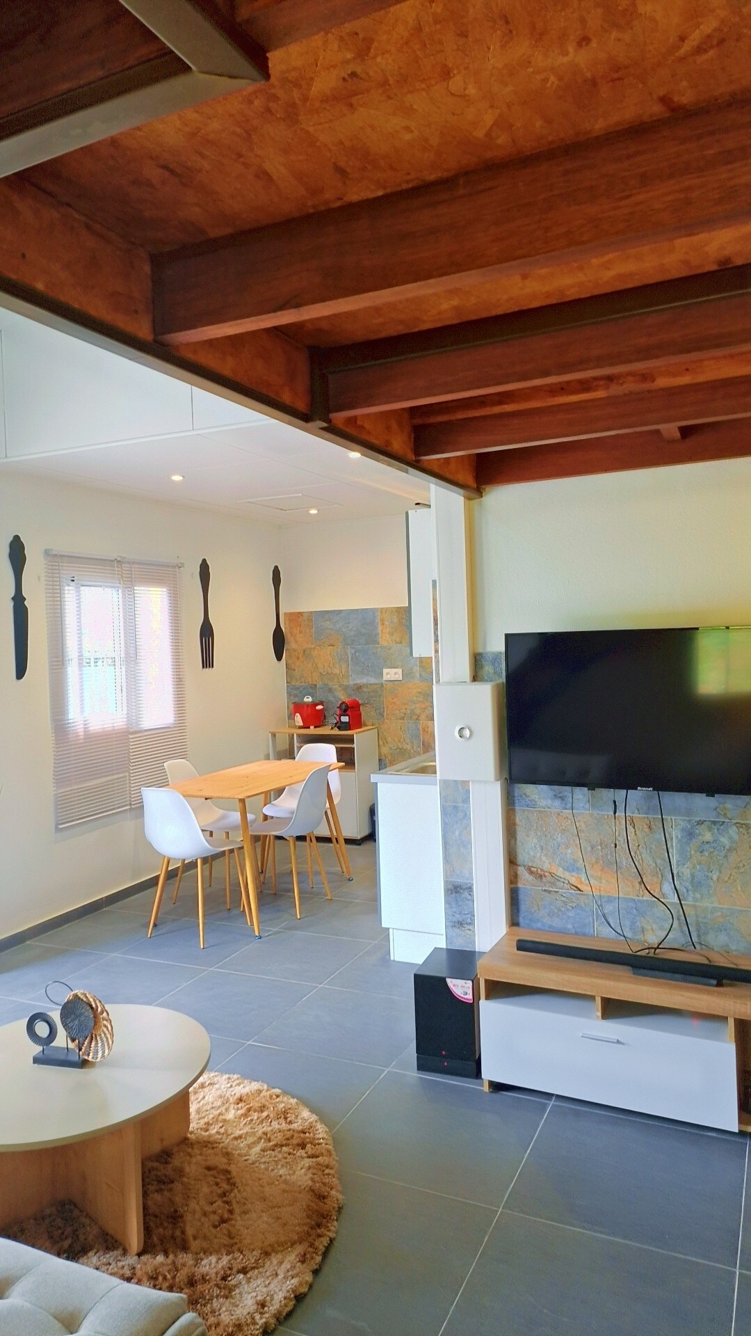 T2 din 40 M2 complet mobilat, utilat și cu aer condiționat, situat într-o reședință privată și sigură. Acces la internet WiFi / CANAL+ / NETFLIX, terasă privată de 20 M2 la etaj, lenjerie de pat, serviciu de curățenie. Terasa fără trepte, piscina și zona de bar/grătar/cuptor de pizza sunt zone comune ale reședinței la care ai acces. Tarife negociabile pentru șederi mai lungi. Este planificată o renovare a terasei, lemnul lucrează mult într-o atmosferă tropicală...