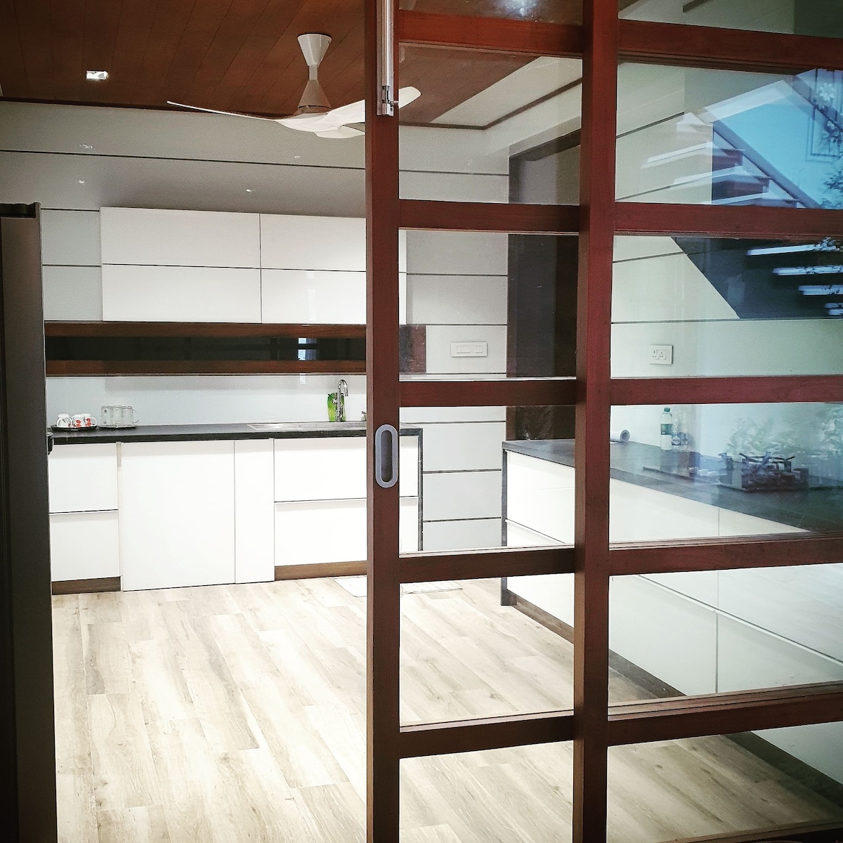 EVARA este un apartament luxos, complet cu aer condiționat, certificat de Ministerul Turismului, care oferă mobilier premium și dotări de top pentru un sejur liniștit. La doar 100 m de Spitalul KIMS și aproape de Lulu Mall, Gara Kochuveli, Technopark și Aeroportul Internațional, este perfect situat în Trivandrum. Bucură-te de balcoane orientate spre râu, o curte pavată confortabilă, sunetul Dolby Atmos, o bucătărie complet utilată și confort modern. Ideal pentru familii, prieteni sau călători de afaceri.