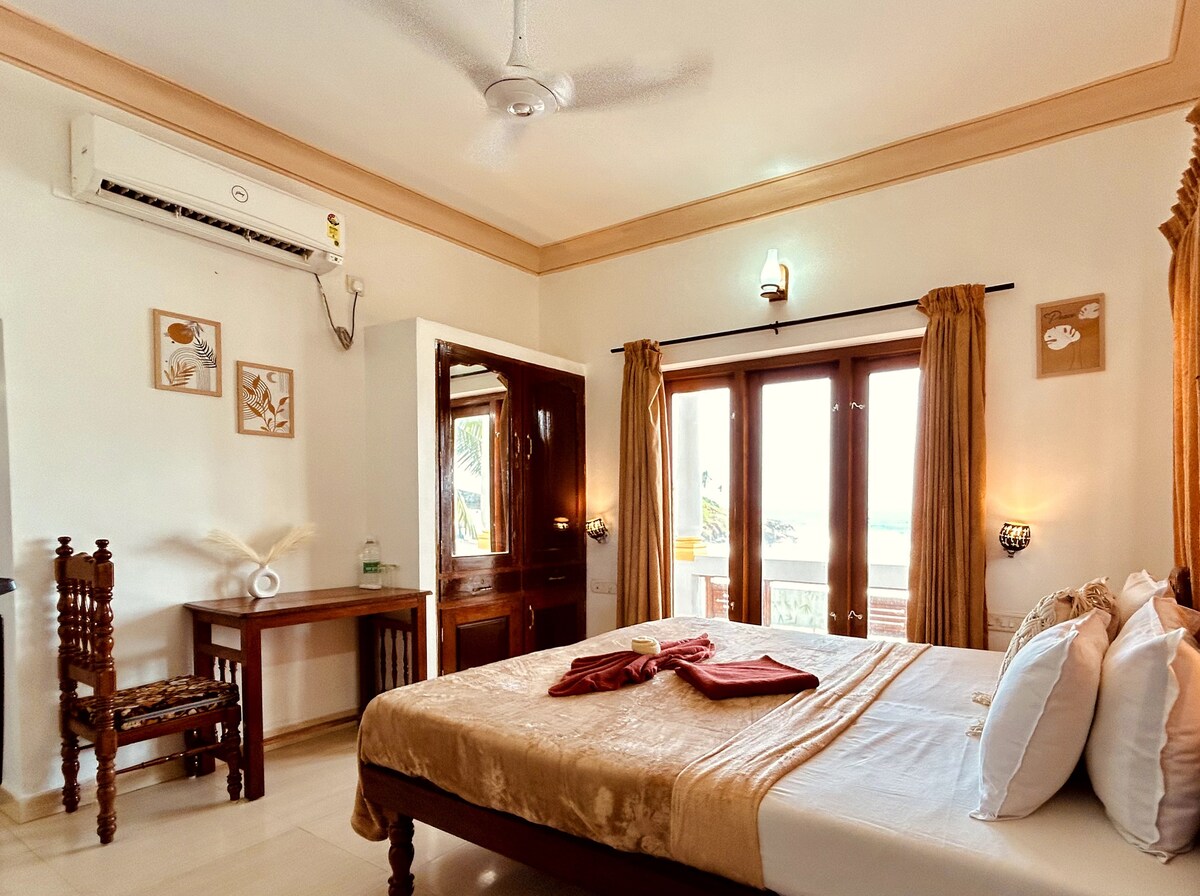 Evadează într-un sejur liniștit pe malul oceanului în camera noastră confortabilă, cu balcon privat și vedere directă la mare. Trezește-te în sunetul valurilor, bucură-te de cafeaua de dimineață cu vedere la ocean și ajungi la plajă în doar câțiva pași. Ideal pentru oaspeții care caută intimitate, relaxare și o adevărată experiență pe litoral la Kovalam Beach.