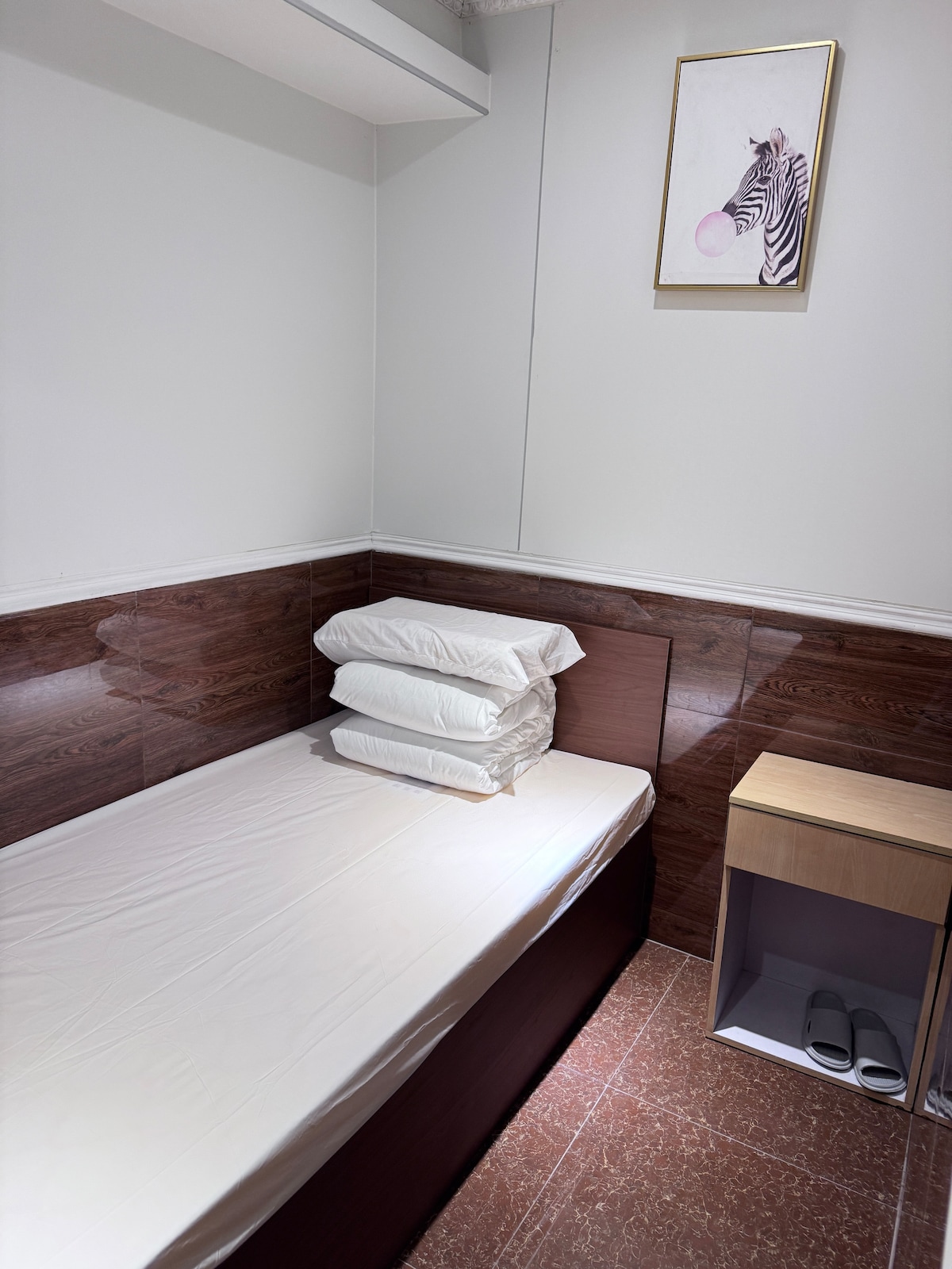 Această unitate de cazare se mândrește cu o locație excelentă, cu conectivitate excelentă. Este la 5 minute de mers pe jos de stația de metrou. Baie privată cu duș cu apă caldă și toaletă. Un pat de o persoană cu saltea și pernă și cearșaf. Canale TV de bază. Aer condiționat. Conexiune Wi-Fi gratuită. Clădirea nu are oră de stingere și lift în funcțiune non-stop. Vei împărți ușa principală și holul cu alte camere din acest apartament. Aceasta este o casă de oaspeți cu licență aprobată de guvernul din Hong Kong.