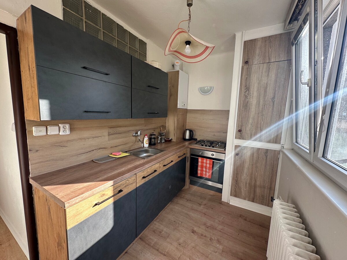 **STAI ÎN INIMA JIHLAVA** ✨💫Bine ai venit la șederea noastră, apartament complet utilat la ultimul etaj, doar pentru tine. Inclusiv un pat matrimonial și o canapea extensibilă pentru oaspeți. 😴💤 Poate găzdui până la 3 oaspeți sau este minunată pentru un refugiu pentru cupluri. 🚶🚶La doar 5 minute de mers pe jos de centrul istoric al orașului Jihlava. 🛍️🛒 7-10 minute până la centrul comercial principal City Park. Descoperă grădina zoologică Jihlava 🐅🦒 sau a doua cea mai mare ⛏️⛏️experiență subterană din Republica Cehă!