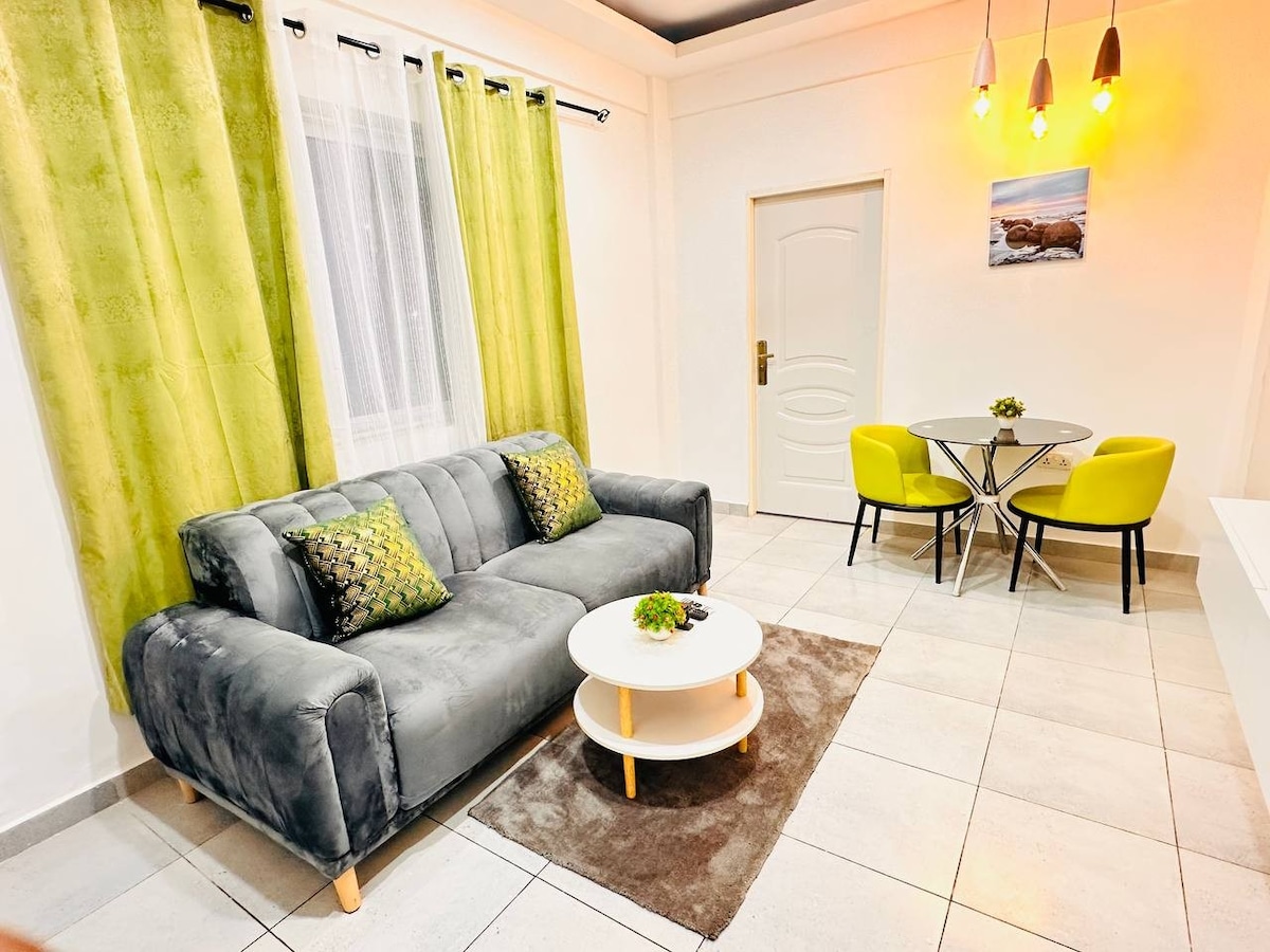 Situat convenabil chiar lângă autostrada Accra-Tema, apartamentul se află la aproximativ 30 de minute de Aeroportul Internațional Kotoka și la 15 minute de Accra Mall, oferind acces ușor atât la destinațiile de afaceri, cât și la destinațiile de agrement. Apartamentul Jade Prestige are un dormitor spațios, o zonă de living confortabilă, un balcon privat și o bucătărie complet utilată — toate concepute cu grijă pentru a-ți oferi confort, stil și o adevărată experiență de acasă.