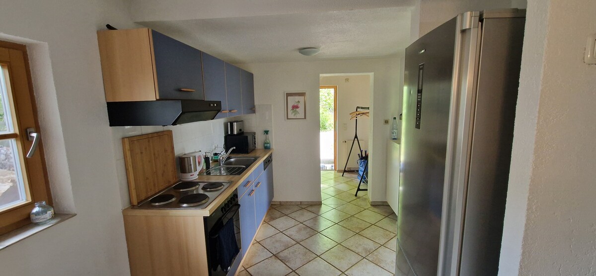 Unsere moderne Zwei-Zimmer-Einliegerwohnung bietet eine kleines Schlafzimmer, ein Wohnzimmer mit Schlafcouch, eine komplett ausgestattete Küche, eine Abstellkammer, ein modernes Bad mit Regendusche und zwei sonnige Terrassen. Die Wohnung hat einen eigenen Zugang über den Garten. Parken ist an der kaum befahrenen Straße möglich. Durch die ländliche Lage empfiehlt sich ein Auto. München ist in ca 35 Minuten, die Berge in 50 Minuten Fahrzeit erreichbar.