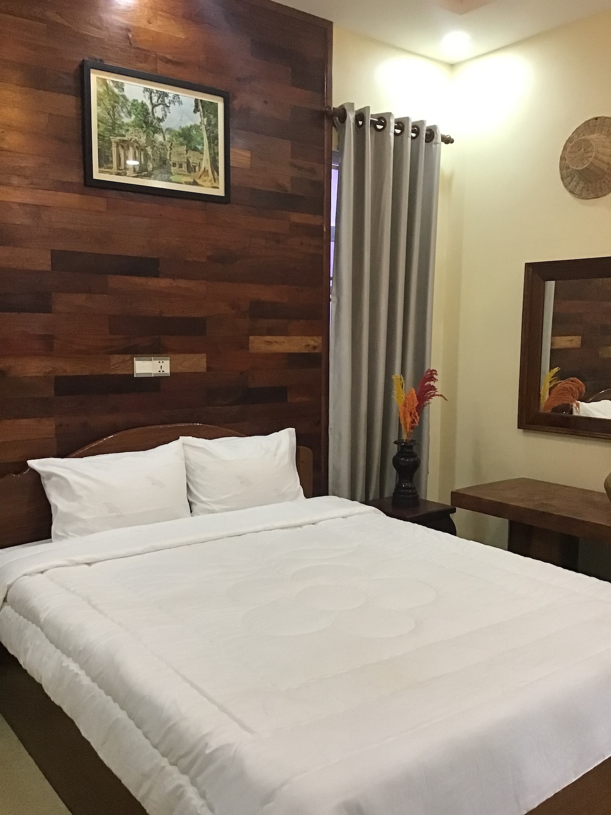 Situat în cel mai bun cartier central din Siem Reap. Nimic nu este mai mult de 5 minute de mers pe jos sau la un scurt tuk-tuk distanță! Apartamentul nostru studio drăguț îți oferă acces strălucit la toate atracțiile din Siem Reap. Wi-Fi gratuit excelent. Grădini private. Poziție liniștită. Sigur. Somn liniștit. Te voi găzdui cu plăcere și te voi ajuta să-ți faci șederea o amintire reală. Te pot ajuta cu închirierea de scutere în siguranță, ghidul restaurantului, bilete Angkor Wat, satul ecologic, tururi culturale, degustare de mâncare locală, piețe..