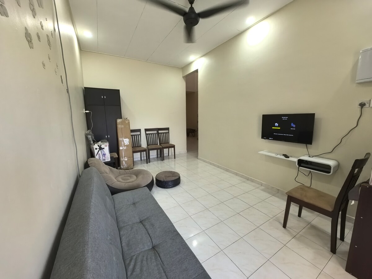 SemiD nou cu vedere frumoasă la Muntele Jerai din casa de vacanță. Locație foarte strategică (5 km până la Main Guard și 12 km până la Desert Toll). Echipat cu 3 dormitoare (2 AC), living cu aer condiționat, Smart TV, WIFI, mașină de spălat și multe altele. La fel de confortabil ca și cum ai fi acasă! Casă nouă semi-detașată cu vedere frumoasă la Muntele Jerai. Situat strategic lângă Guar Utama (5 km) și Gurun Toll (12 km). Include 3 dormitoare (2 cu aer condiționat) și living cu aer condiționat, Smart TV, WIFI, filtru de apă și multe altele. Simte confortul propriei locuințe!