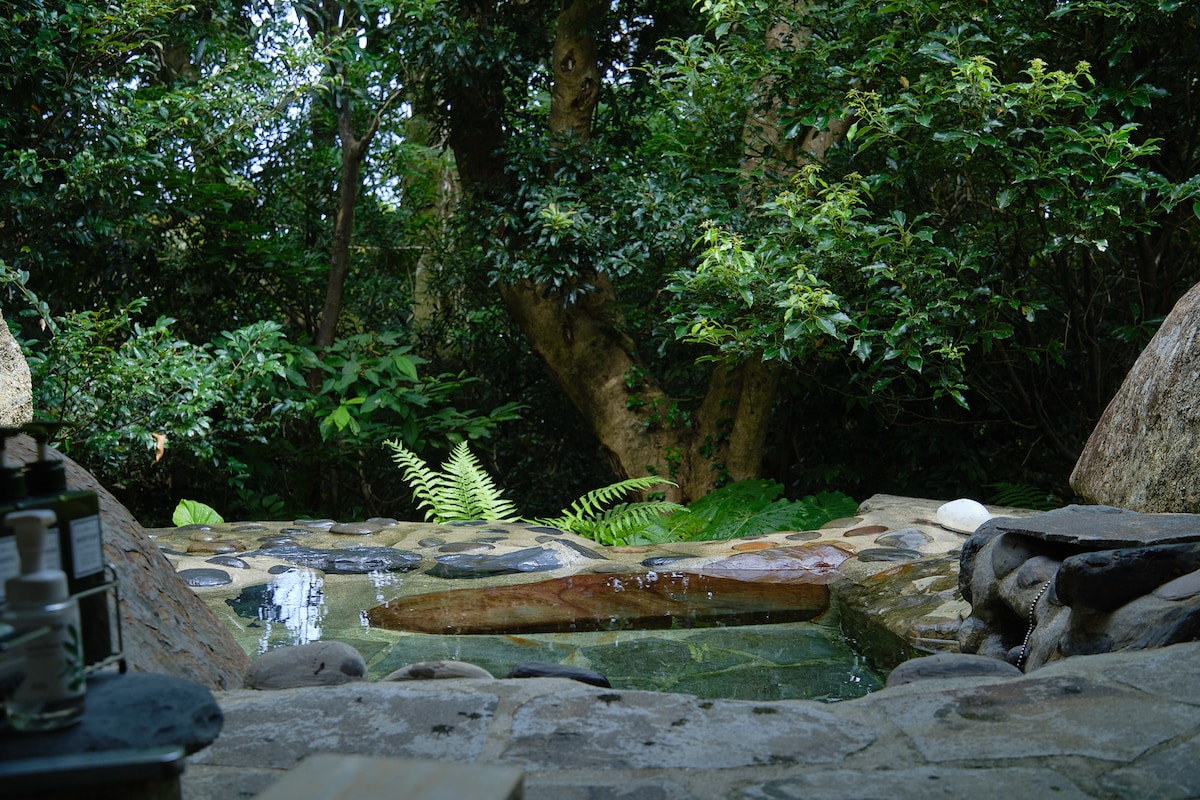 屋久島の静かな南部に佇む、自然に包まれた一棟貸しのguesthouseです。 目の前には川が流れ、森と星空に囲まれた特別な時間をお過ごしいただけます。 最大の魅力は、露天風呂とサウナ。 川のせせらぎを聞きながら、森の中でととのう体験はここでしか味わえません。 昼は緑に癒され、夜は満天の星の下で心と身体をゆっくりと解きほぐしてください。 ご宿泊料金には、以下すべてが含まれています。 ・露天風呂・サウナ(22時までにご利用下さい) ・サウナポンチョ&サウナハット ・タオル類(追加もご用意可能) 自然の中で「何もしない贅沢」と「ととのう時間」を楽しんでいただける、屋久島ならではの滞在です。 川の直ぐ横なので水浴びも出来ます。 川にはデッキもあり朝食やコーヒータイムにご利用下さい。 屋久島らしい自然と水に囲まれた場所でリラックスしてお過ごし下さい。 川の斜め反対側には隣人の庭があり完全なプライベート空間ではありません。水着のご持参をお勧めします。 サウナストーブは日本製のブロスサウナです。高温のサウナを堪能出来ます。