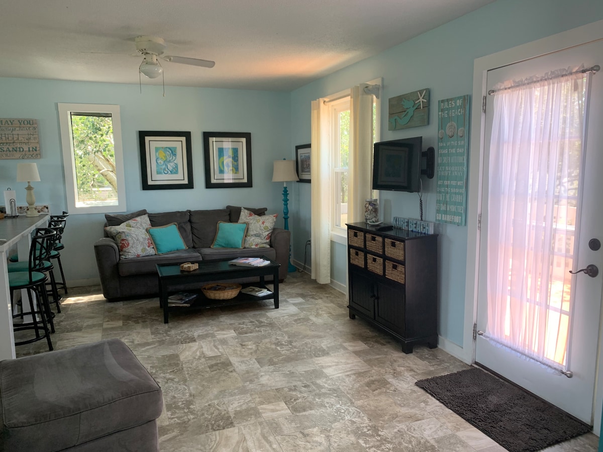 La doar 3 minute de mers pe jos de plajă! După o zi la soare cald, mare răcoroasă și nisip moale, îți va plăcea să te relaxezi în acest apartament confortabil de la parter. Vei avea intrare separată, parcare, dormitor complet, bucătărie, baie și o briză acoperită. Trezește-te la o cafenea aprovizionată și fă o scurtă plimbare sau cu mașina mai scurtă pentru a privi frumosul răsărit de soare peste ocean sau de la unul dintre cele mai vechi cheiuri de pescuit de pe Coasta de Est, la doar 800 de metri de plaja Downtown Kure.