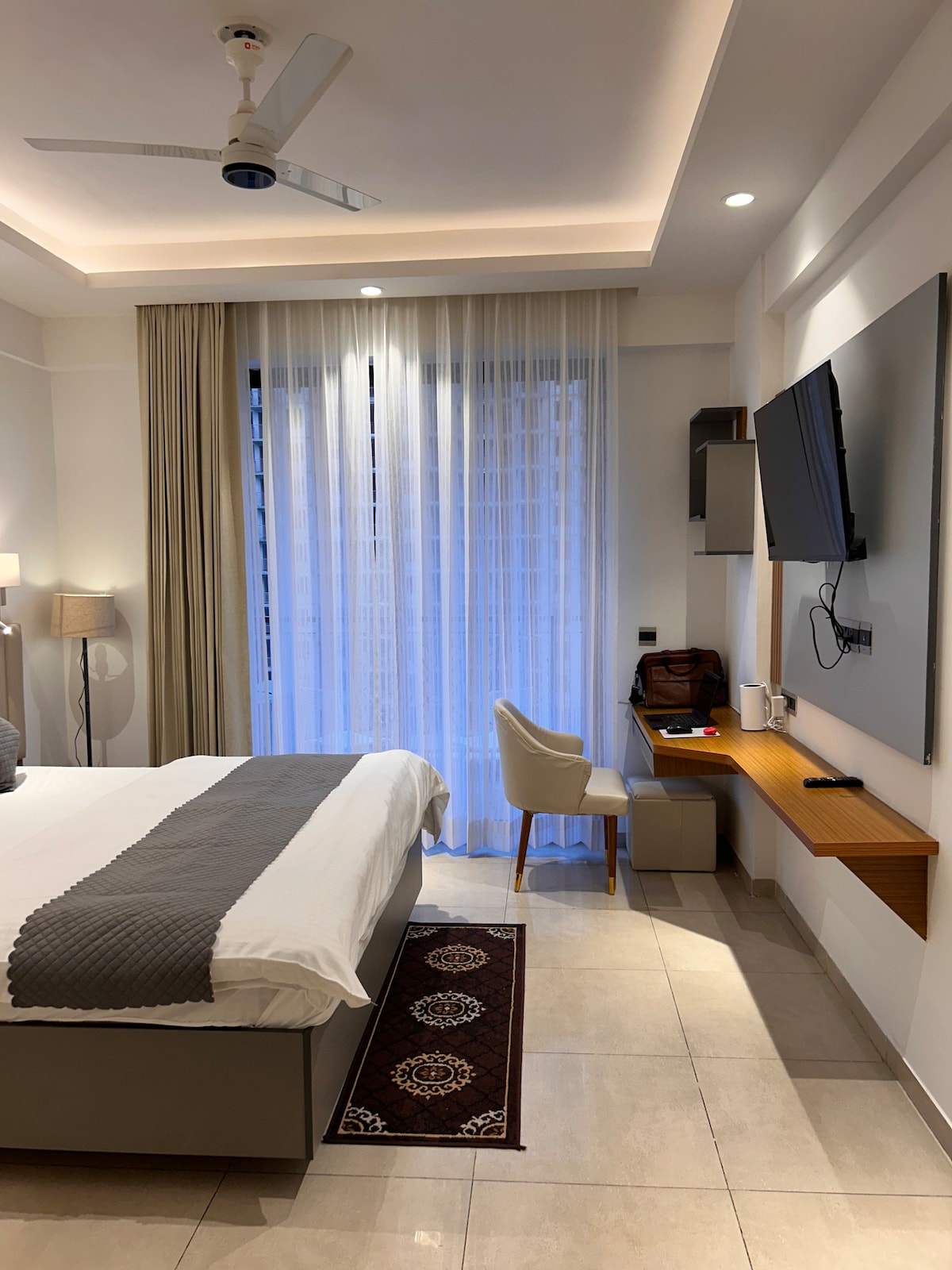 Situat într-un cartier exclusivist din Sushant Golf City, inspirat de Porsche, Prabha Sukoon oferă o liniște rară, cu vedere spre terenul de golf și priveliști deschise, relaxante. Acest apartament de 3 camere, complet climatizat, este amenajat cu un design modern, mobilier premium și toate dotările esențiale pentru o ședere fără probleme. La doar câteva minute de Lulu Mall și Medanta, este ideală pentru familii, prieteni și grupuri care caută confort, intimitate și momente deosebite petrecute împreună, într-un cadru rafinat și liniștit. Stadionul Ekana - 10-15 minute de mers cu mașina