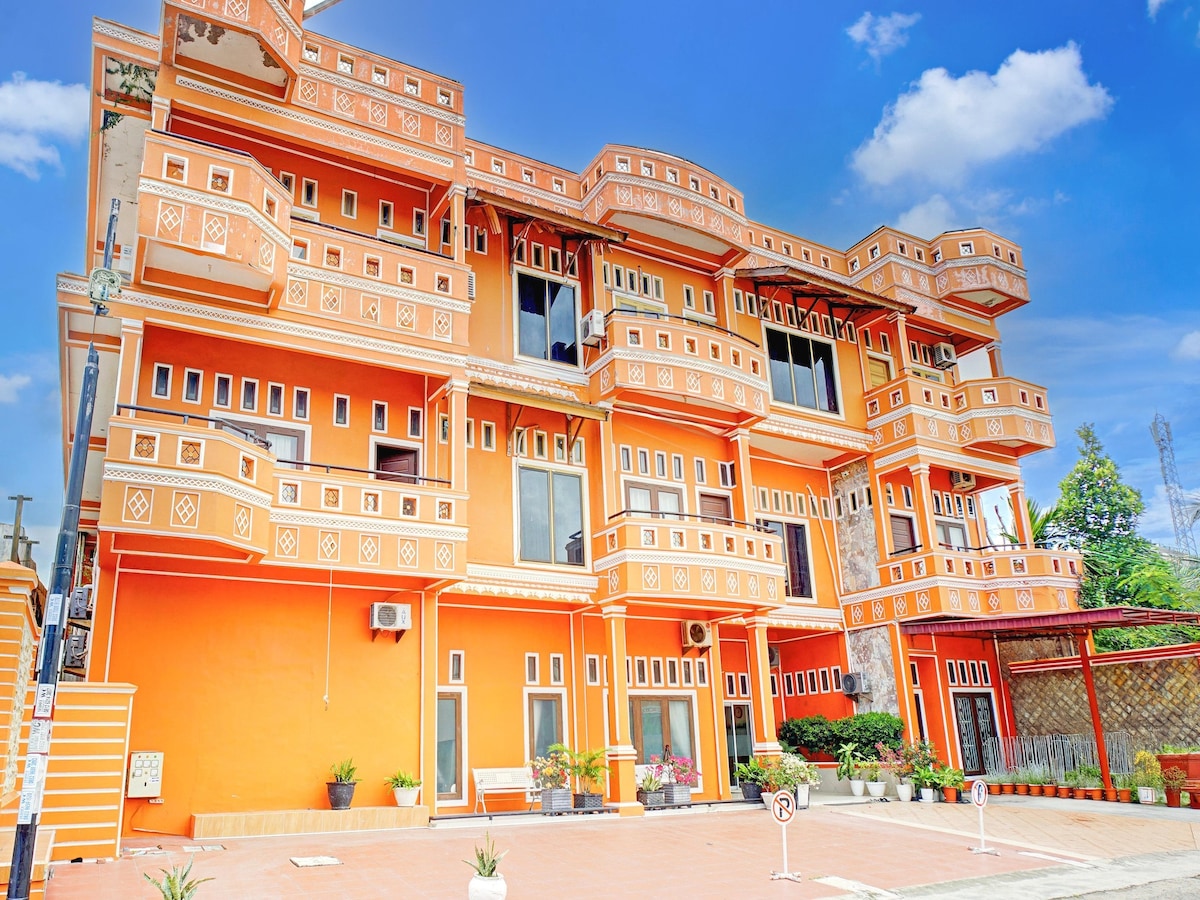 Bună! Stai în Banda Aceh la această unitate liniștită de sine stătătoare. Această cazare este situată convenabil la nivelul 2, cu acces de la propria intrare privată, pe scări din partea laterală a clădirii, unde îți poți parca mașina. Nu vei împărți niciun spațiu comun cu casa principală și nu vei avea acces privat la bucătăria de lângă camera ta de la balcon. Complexul de locuințe oferă servicii de securitate non-stop. Situat la numai 15 minute de centrul orașului.