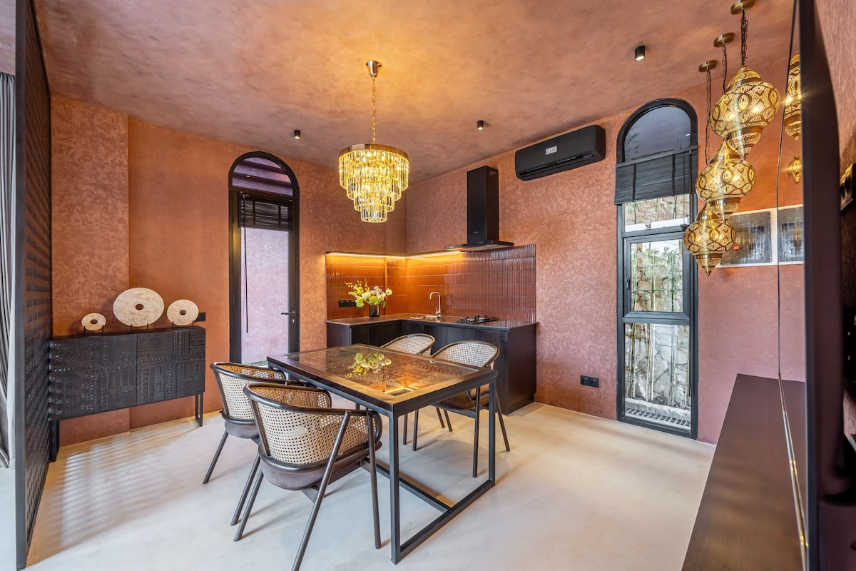 Amplasat într-una dintre cele mai căutate zone din Uluwatu, Koya Suites Uluwatu este un apartament de lux elegant, cu 1 dormitor, creat pentru oaspeții care doresc să stea aproape de surf, cafenele și viața de noapte, fără a sacrifica intimitatea și confortul. La doar câțiva pași de Thomas Beach și la câteva minute de cele mai bune pauze de surf, restaurante și baruri din Uluwatu, acest refugiu intim este ideal pentru cupluri sau persoane care călătoresc singure și care doresc energia din Bali chiar la ușa lor. - Lounge confortabil în interior cu un proiector pentru seri relaxante de film